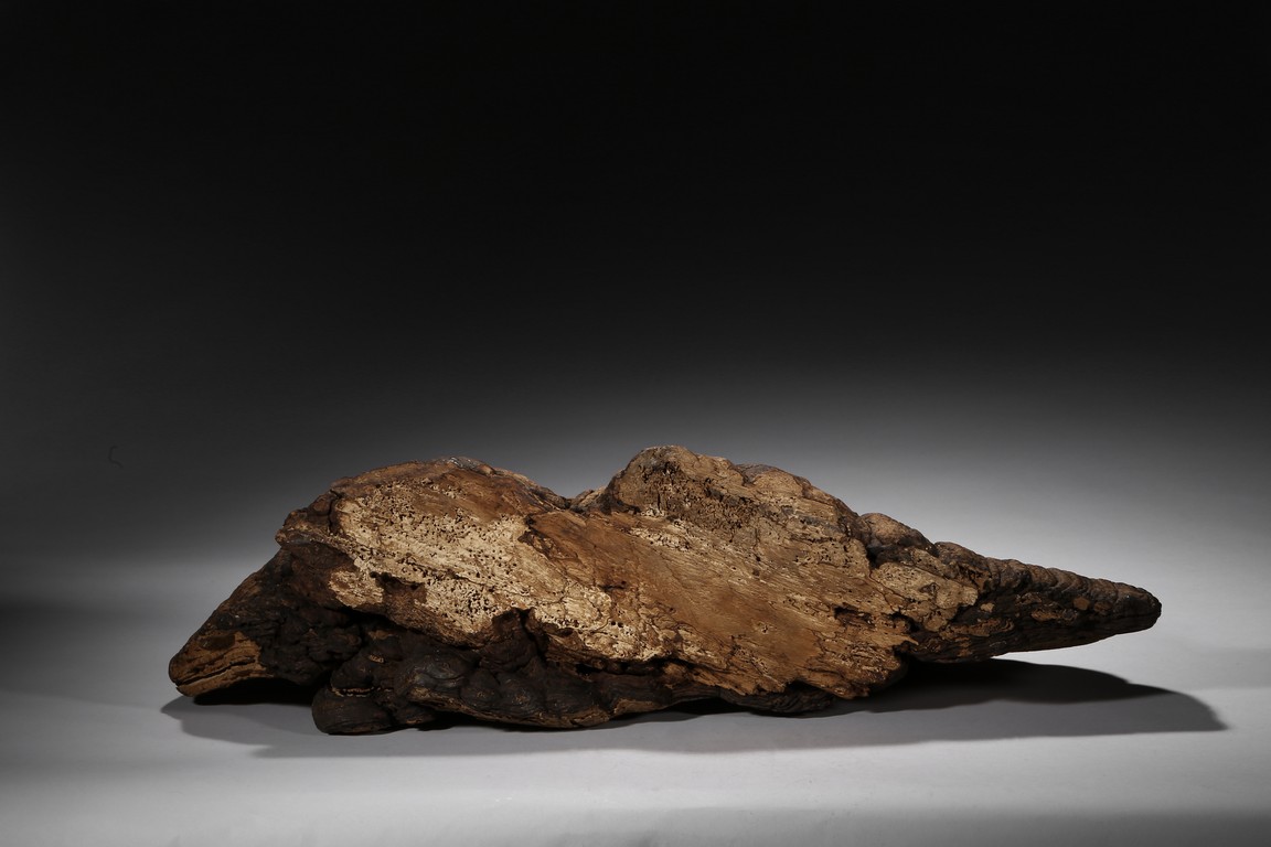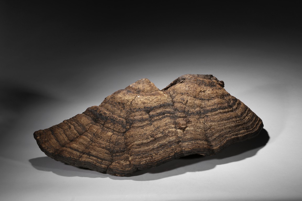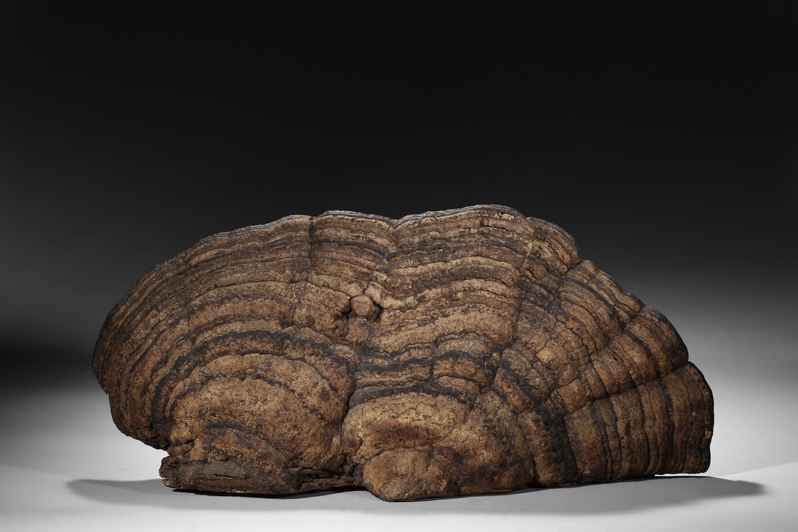 Of horizontal form, the large dried natural lingzhi fungus head with patina. Qing Dynasty period.