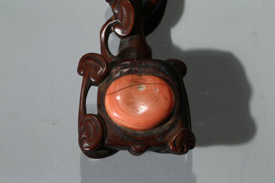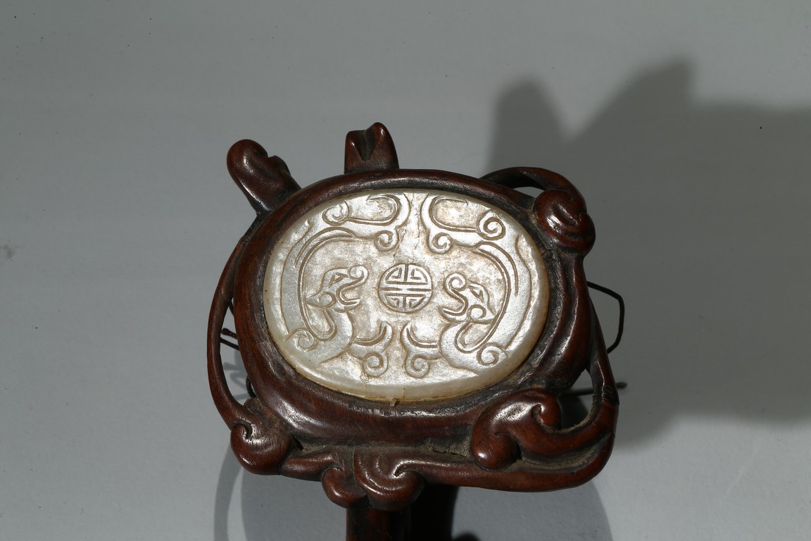 A WOOD CARVED JADE INLAID RUYI SCEPTER 清 紫檀木鑲玉如意