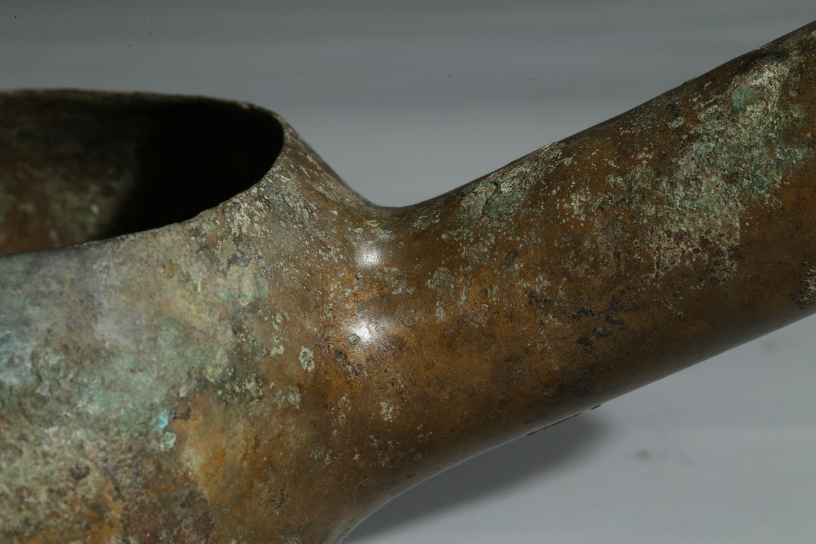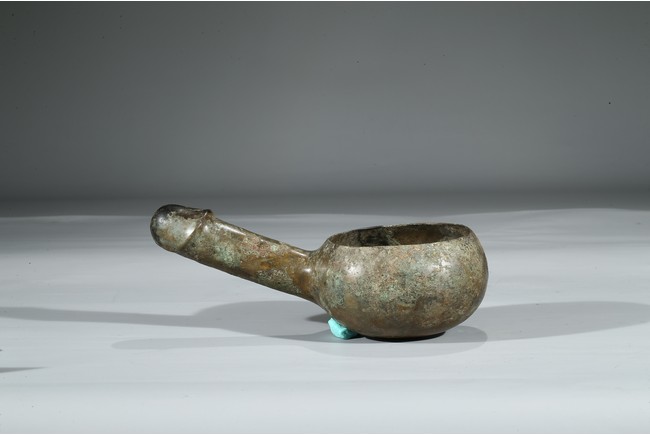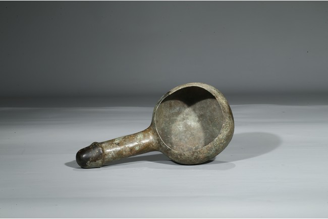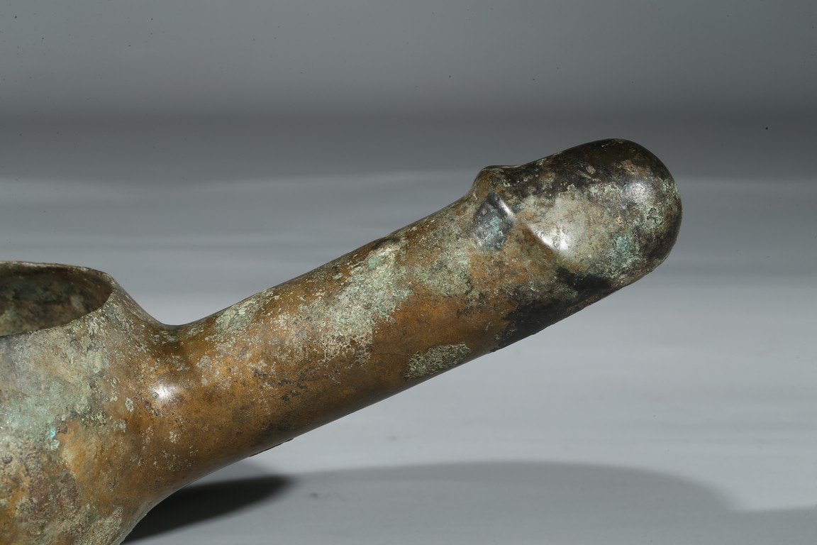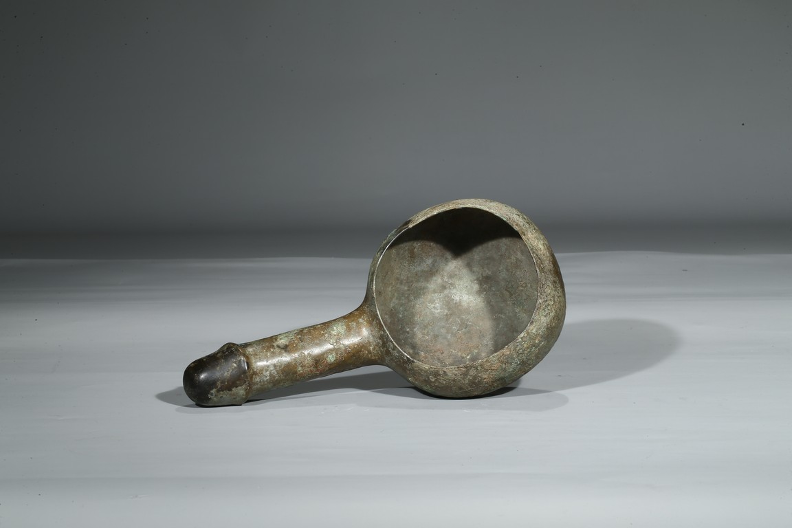 The spoon consisting of a globular deep sided bowl, with handle modelled in the form of penis. Northern China. Western Zhou Dynasty period.