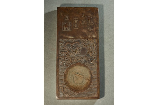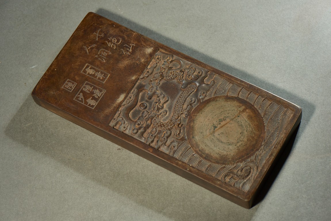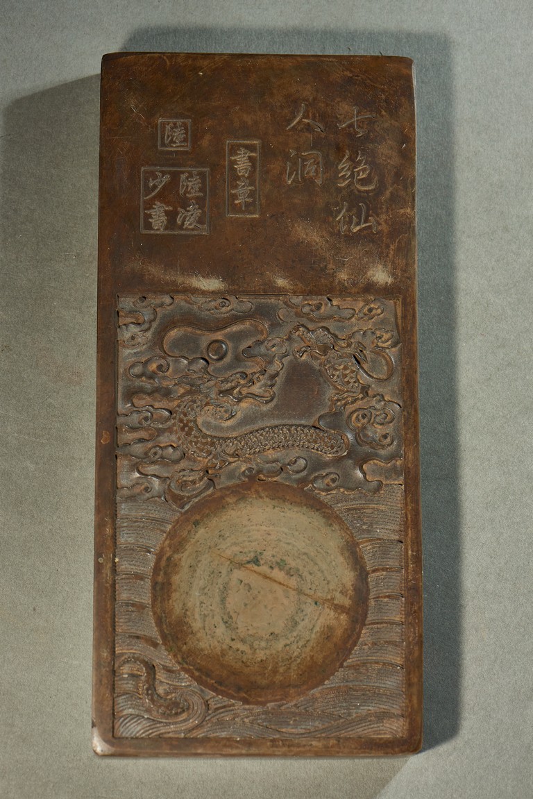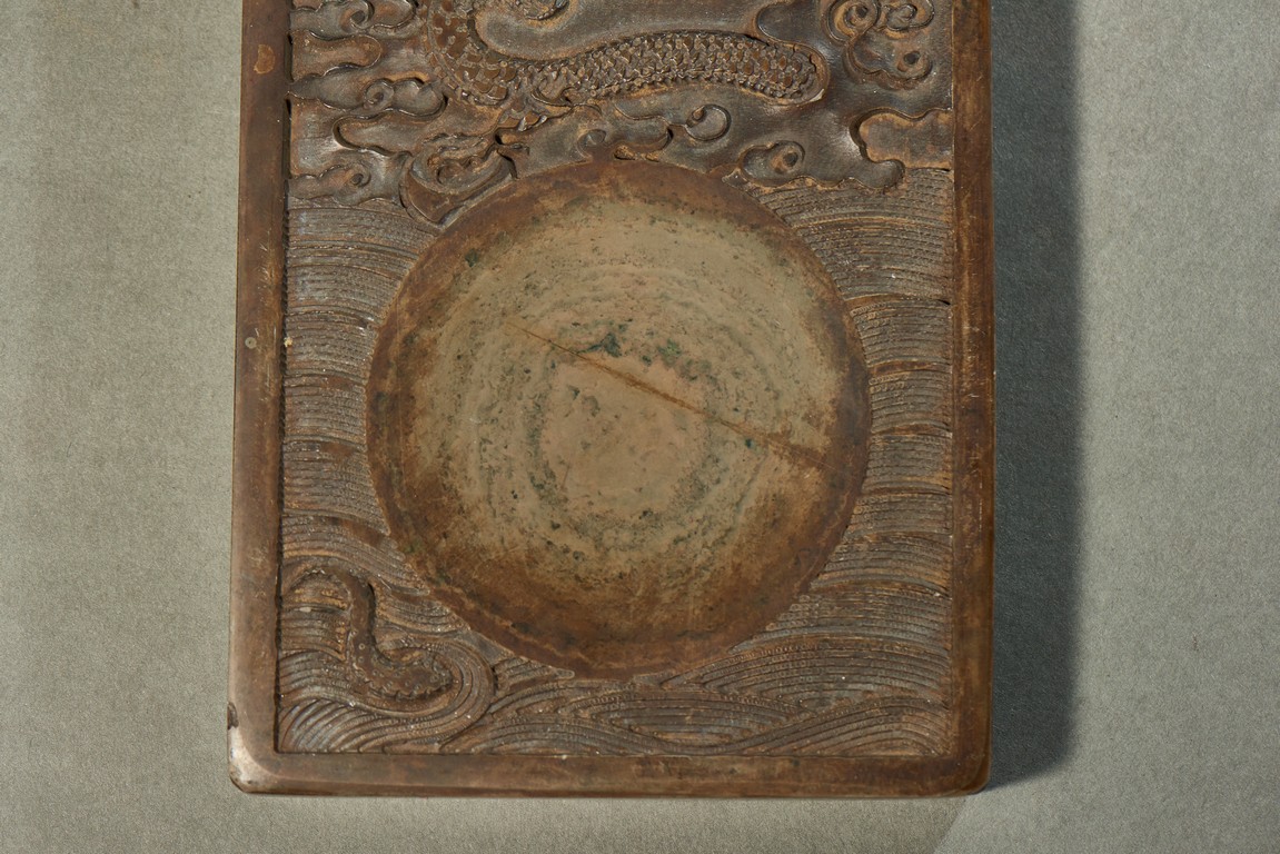 A RECTANGULAR 'DRAGON' INKSTONE 雲龍紋長方硯台