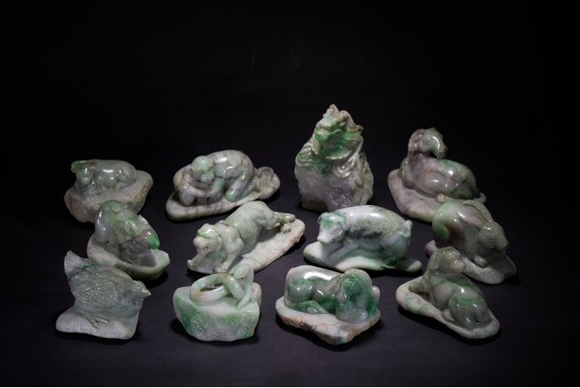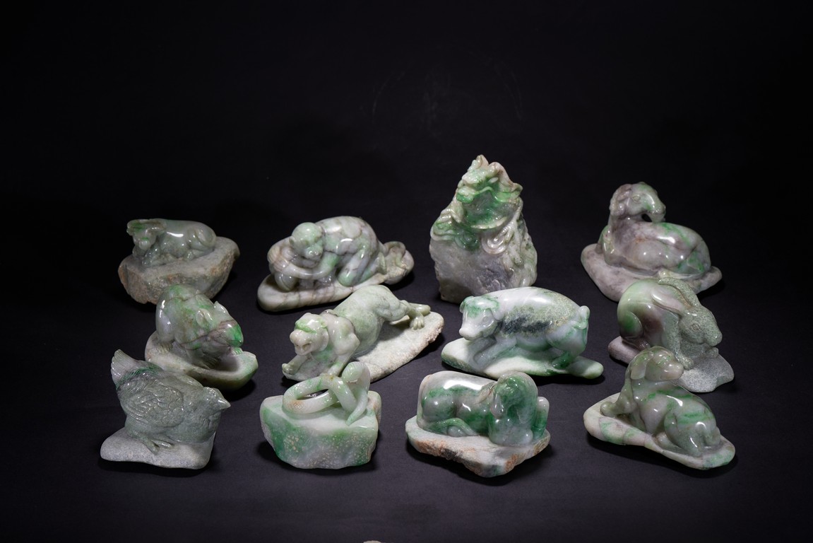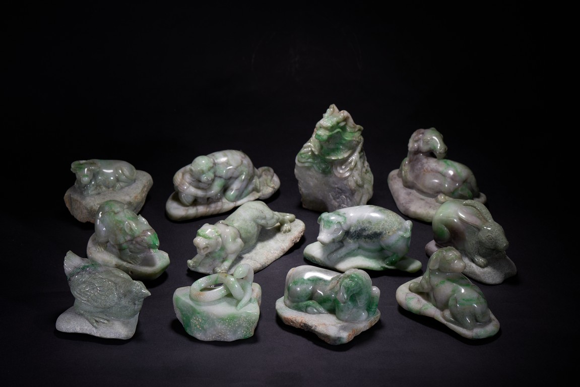Comprising of twelve zodiac animal carvings, each carved out of jadeite.