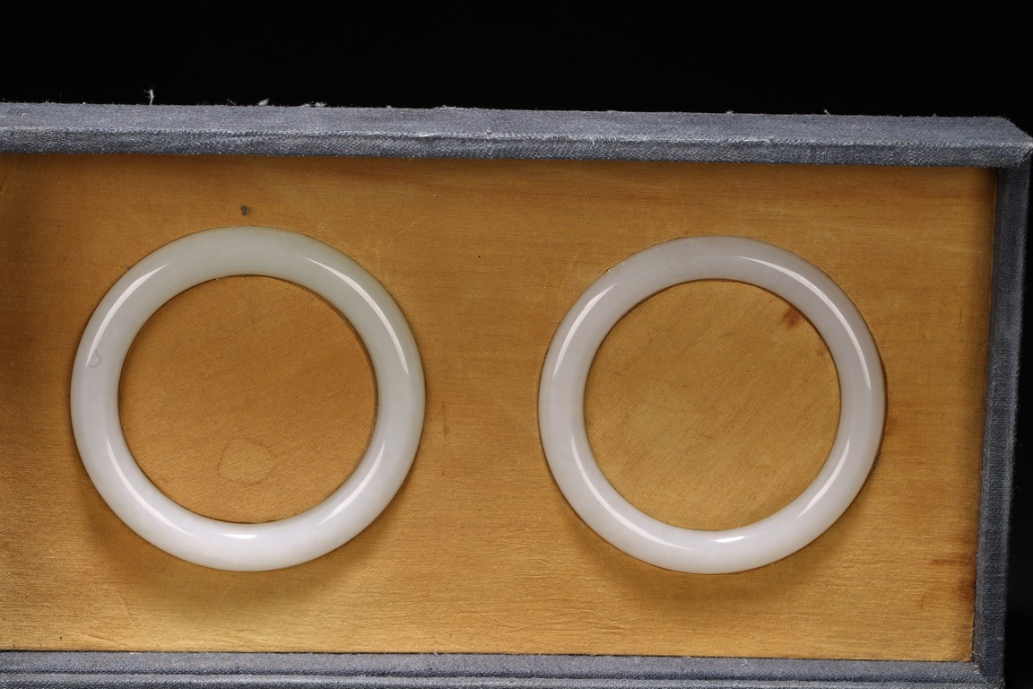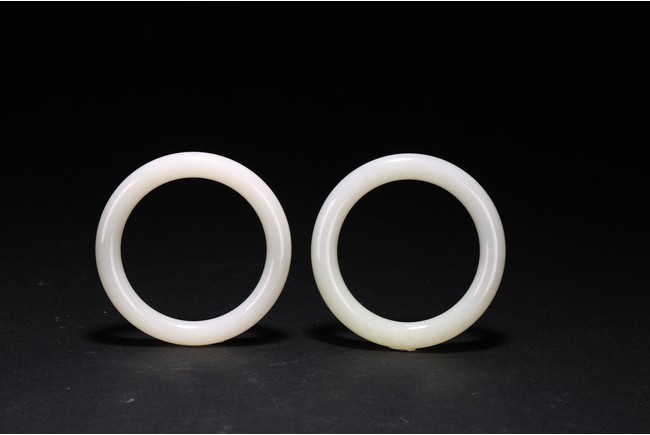 Qing Dynasty period. Each of circular form, the stone is of smoothly polished translucent white tone.
