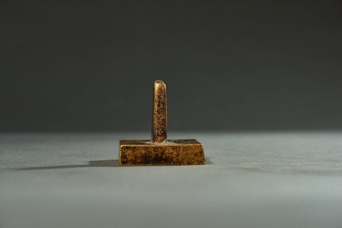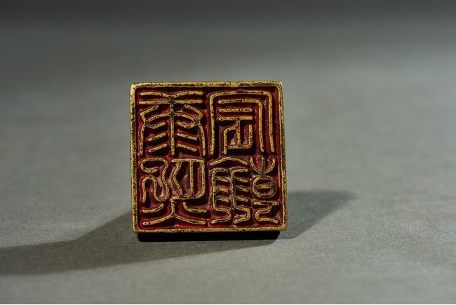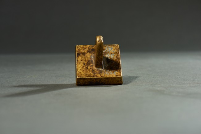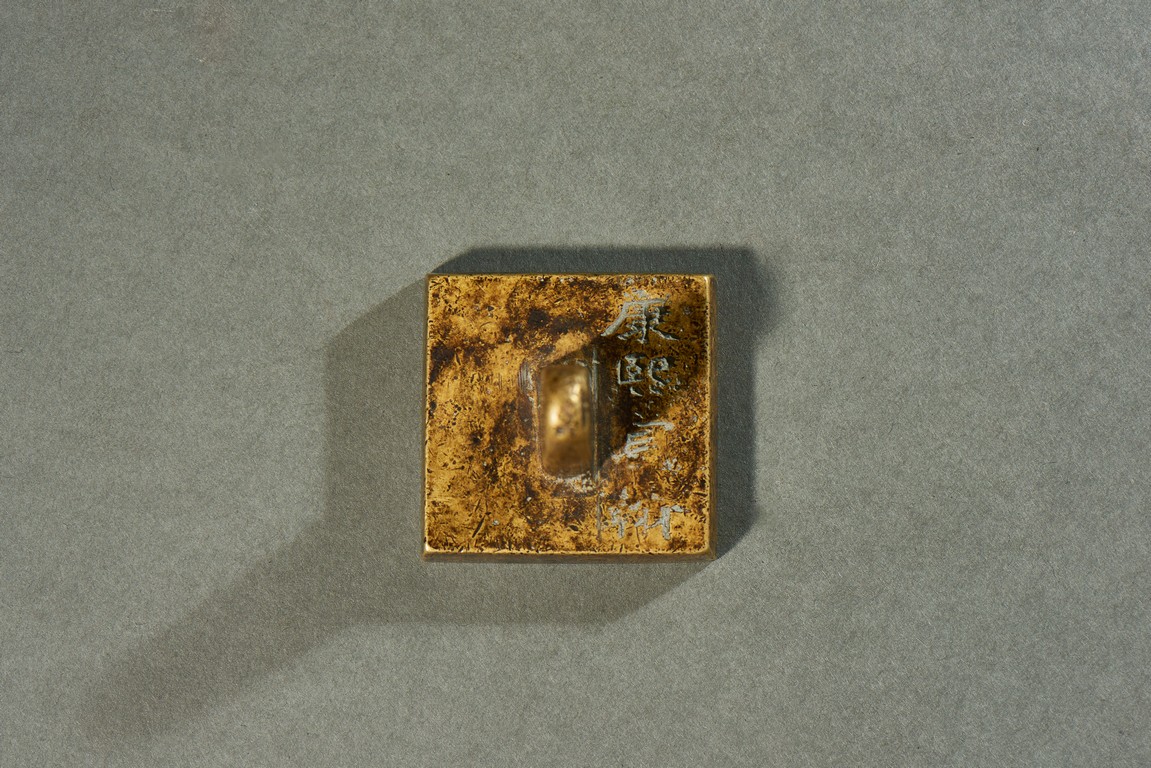 此印製規整、簡潔,以銅為材,銅質優良,形制四方體,上置柱形鈕,便於拿取。印刻“康熙宸翰”。