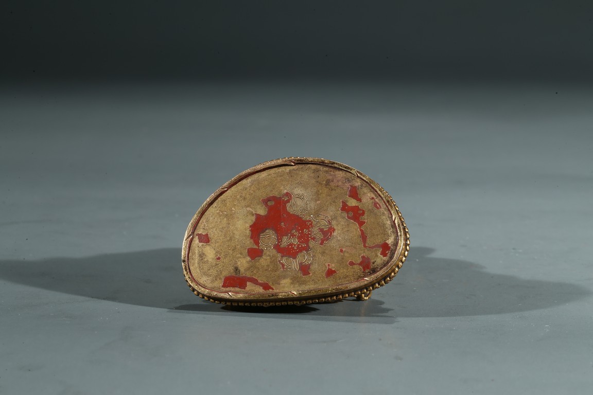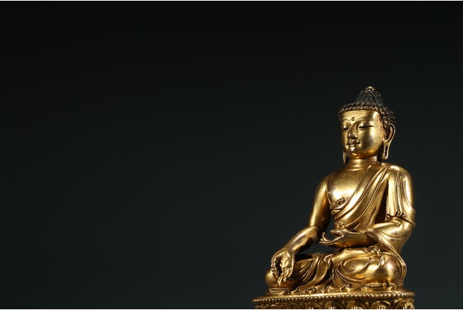 寶生如來,是五方佛中的南方佛,表福德,象徵著大日如來五智中的第三智即平等性智,又譯為“南方福德聚寶生如來”,寶相佛,寶幢佛等, 位於南方歡喜世界,可滿足眾生的一切願望。守護經曰:“復於南方面向北坐,亦作如上金剛結跏,端身正坐,左手如前執衣兩角,右手仰掌,名滿願印,此即寶生如來之印。”佛陀紅銅鎏金,高髻,大耳垂肩,開臉圓潤,額部高廣,眉目清秀,表情肅穆,雙眸俯視,大鼻厚唇,寬肩窄腰,薄衣貼體,左手抱寶瓶結禪定印,右手伸於右膝前,翻掌向前作與願印,下身著僧裙,雙腿結跏跌坐,極富時代氣息。整像工藝精湛,胎體厚重,風格鮮明,特徵突出,是一尊藝術收藏和宗教禮拜兼有的藝術佳作。
