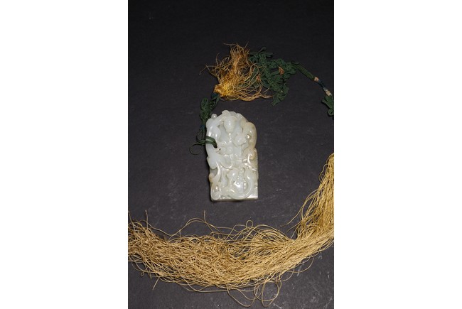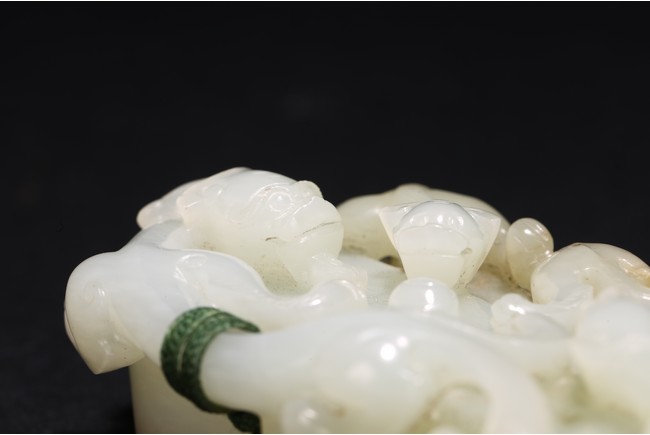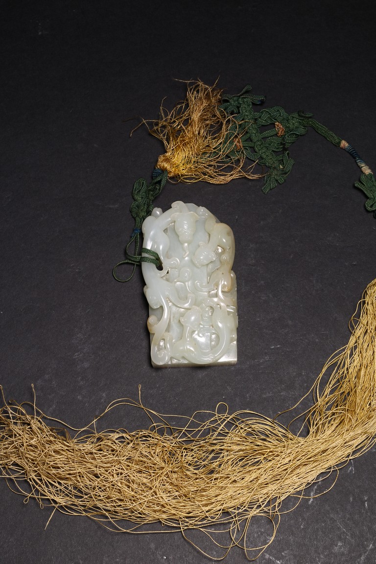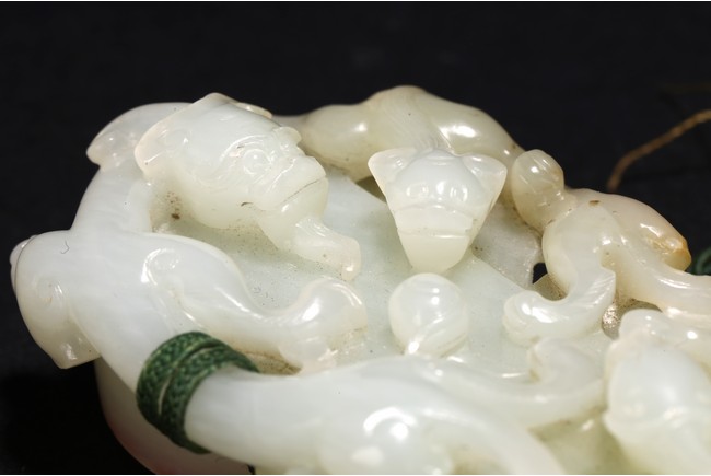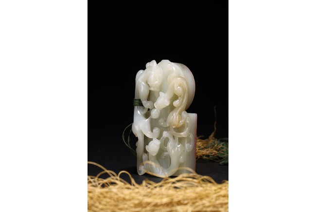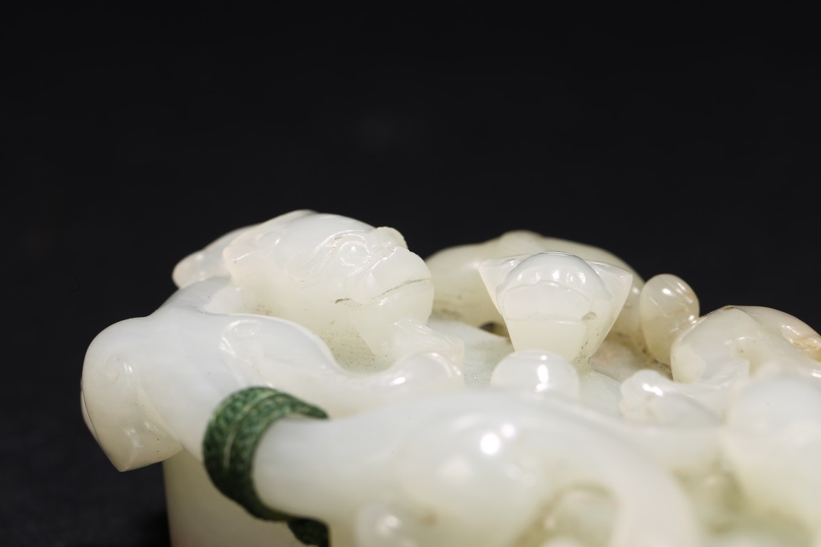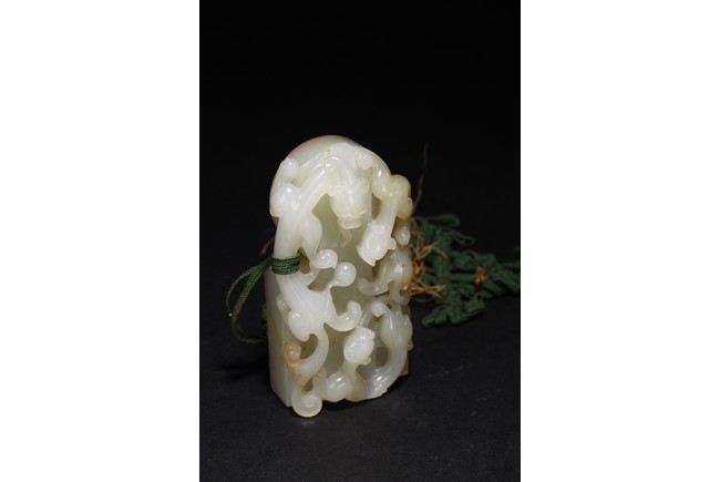 Qing Dynasty period. Of rectangular and circular form, the seal carved with three sinuous chilong in high relief on as finial, the circular and rectangular seal faces each carved with four characters.