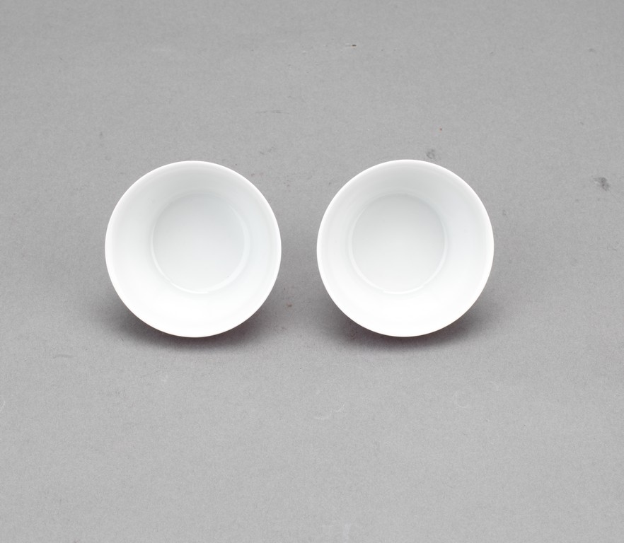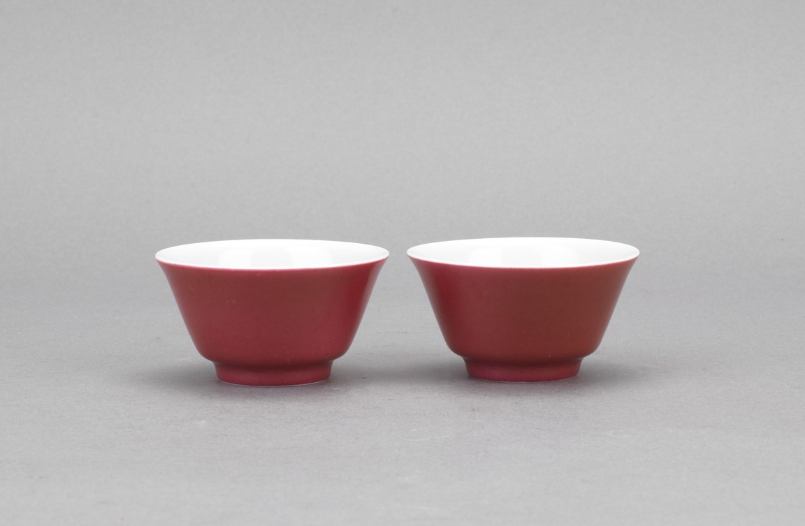 With a slightly everted rim, a rich red glaze to the body that thins toward the rim, the interior and base white, inscribed with six character Yongzheng mark. Qing Dynasty Yongzheng period.