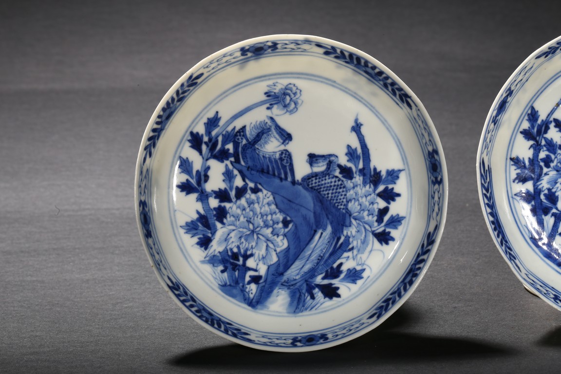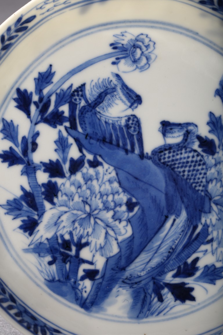 A PAIR OF BLUE AND WHITE 'PHOENIX' DISHES    清 青花鳳鳥紋盤一對