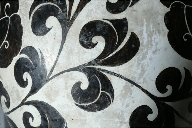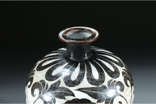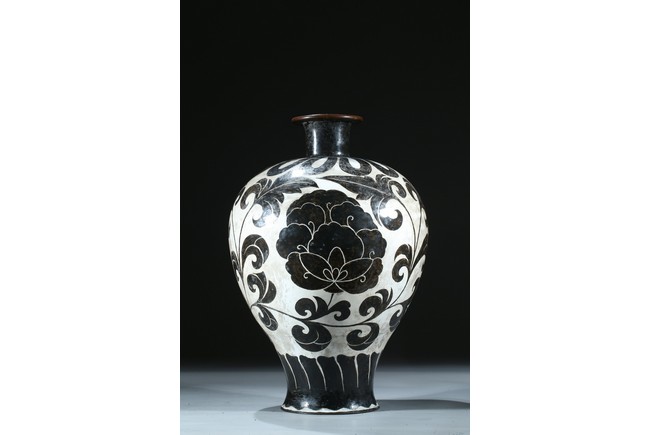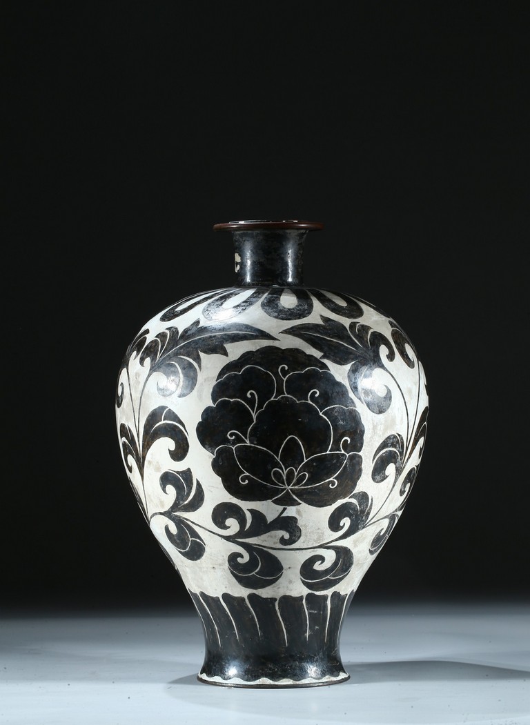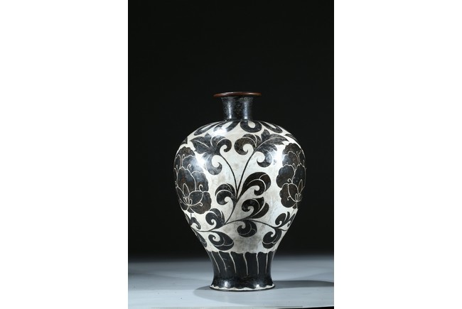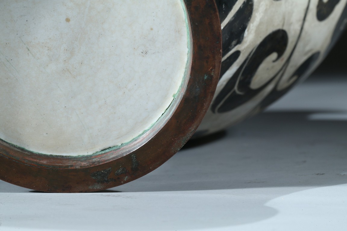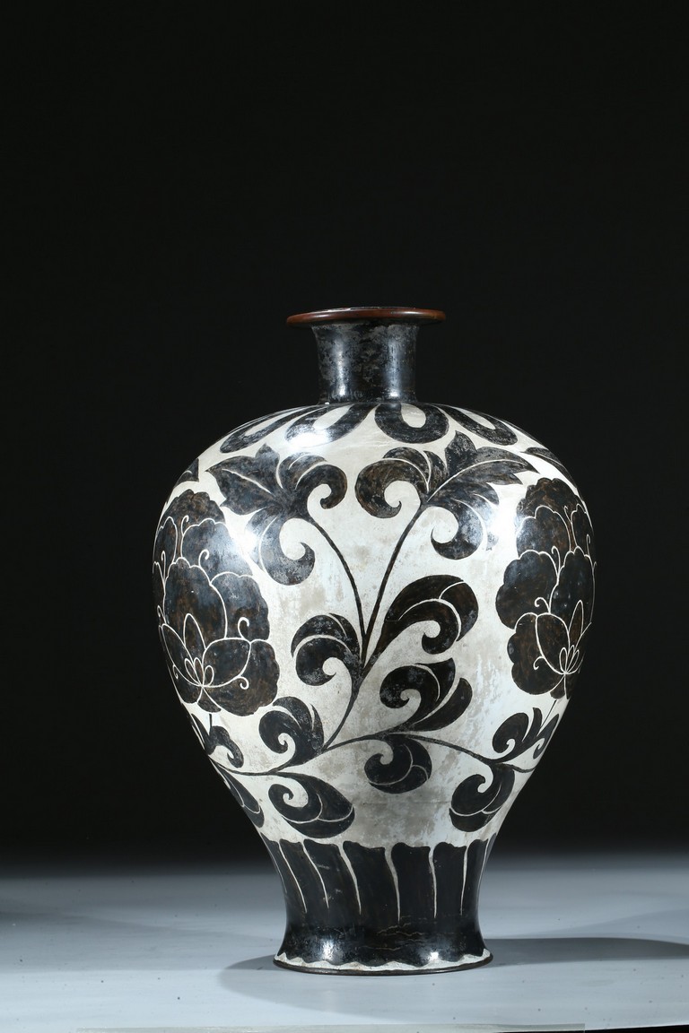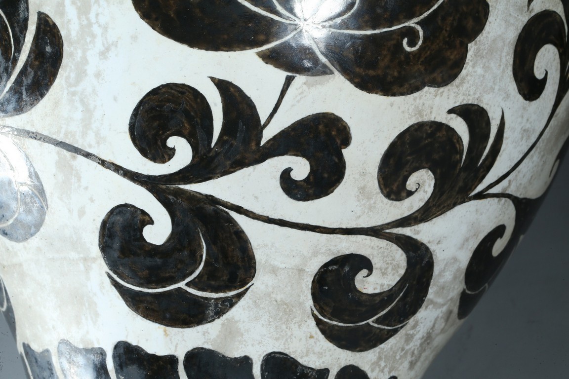 Of baluster form, the exterior decorated with large flower borne on leafy foliate scrolls against white ground, in imitation of cizhou ware porcelain vase. Republic period.