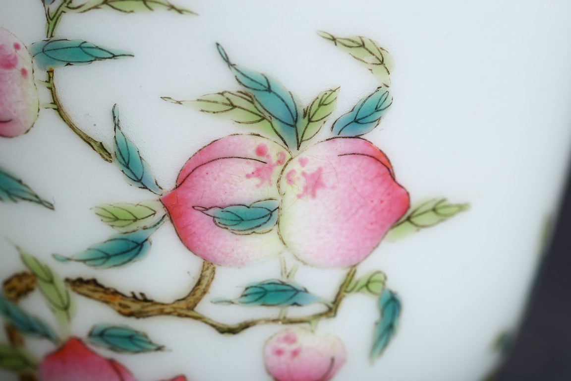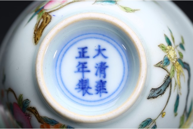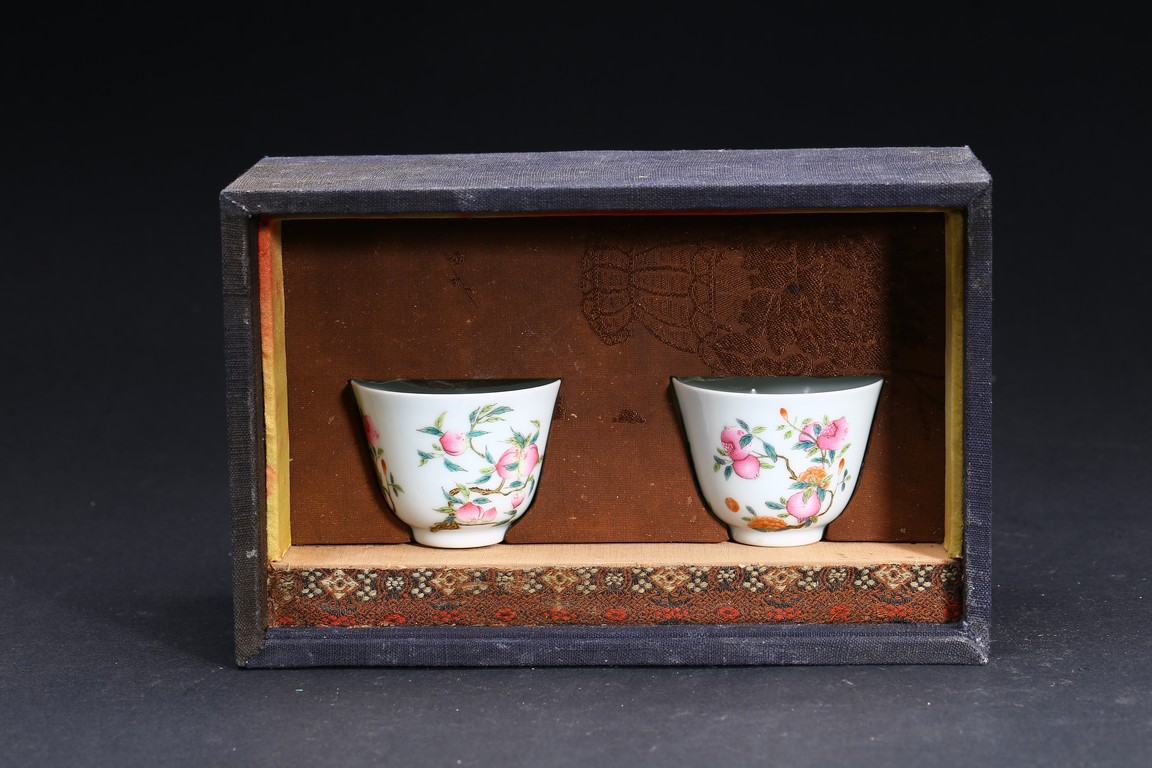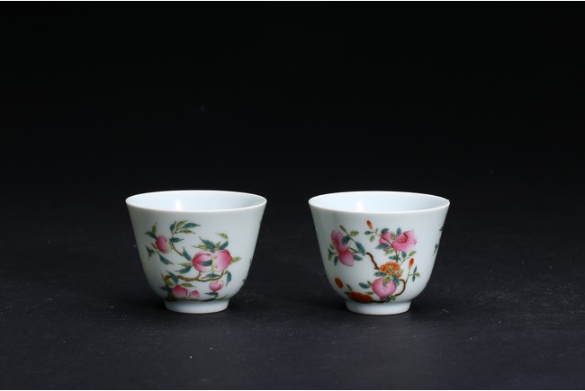A PAIR OF FAMILLE-ROSE 'FLOWER' CUPS 清 粉彩壽桃杯一對