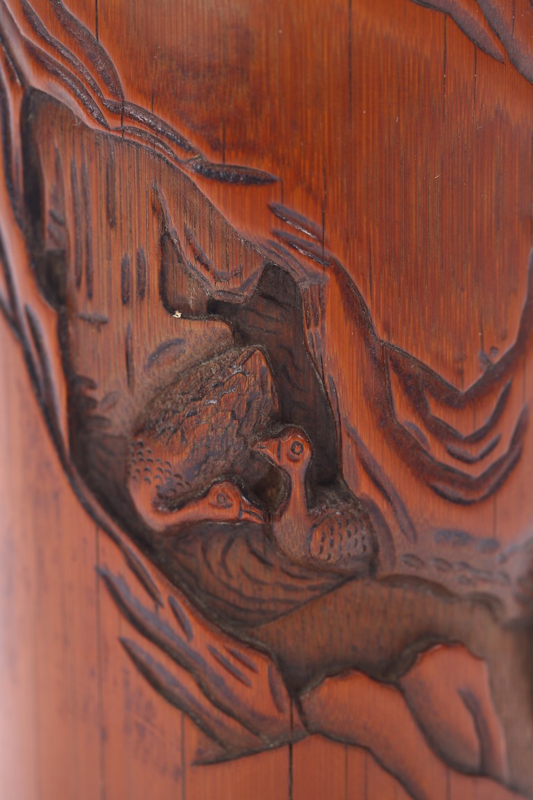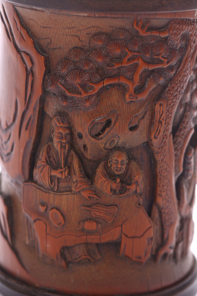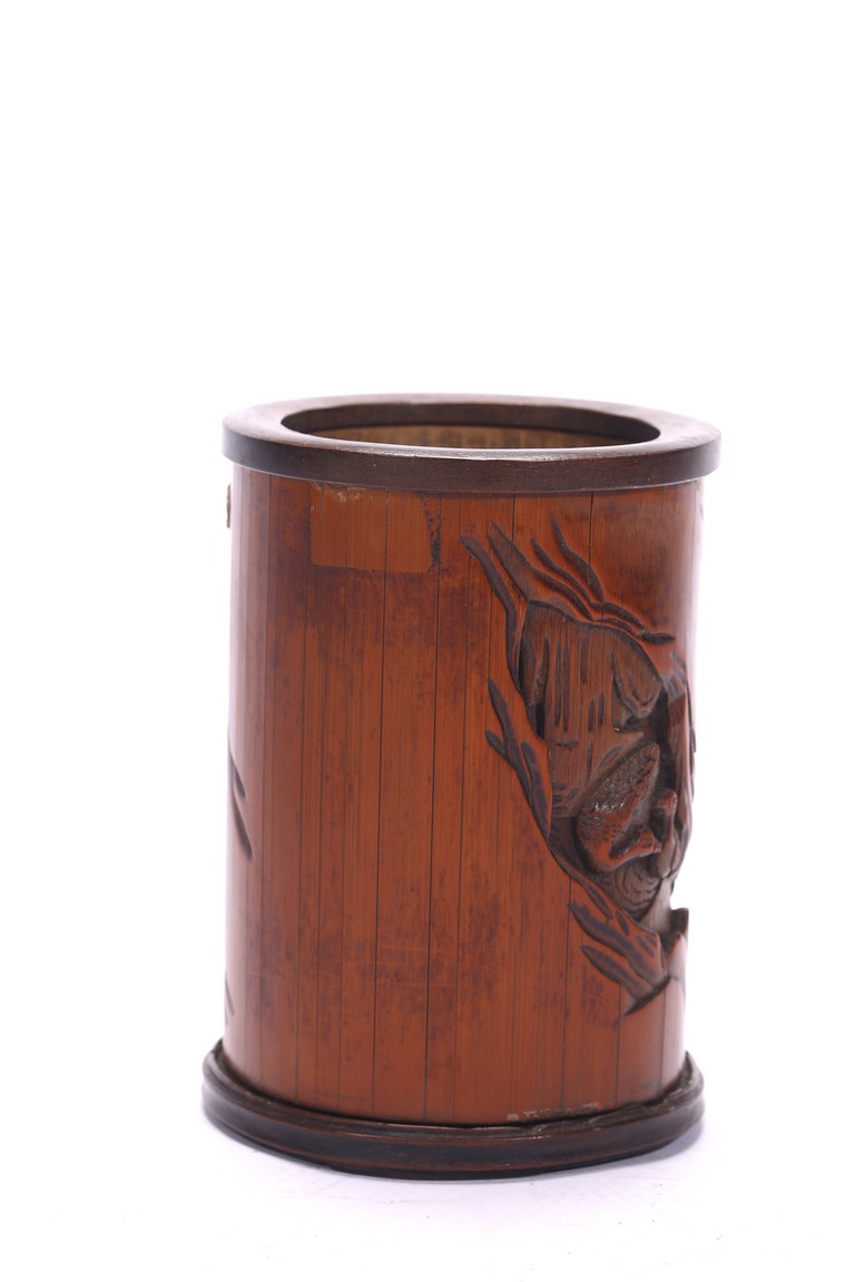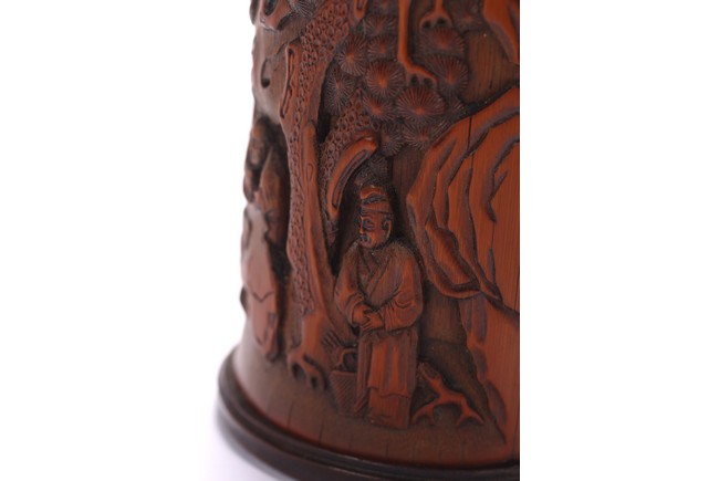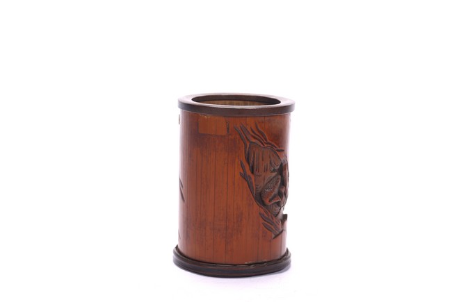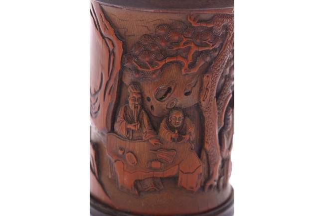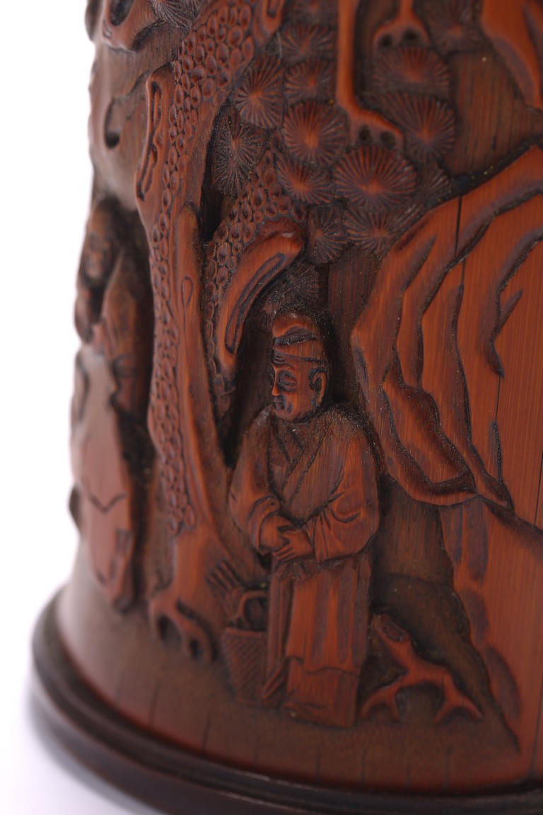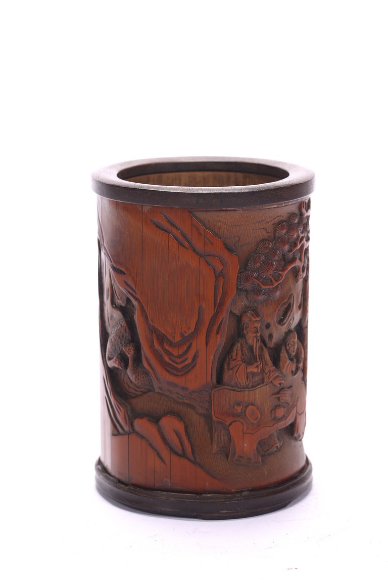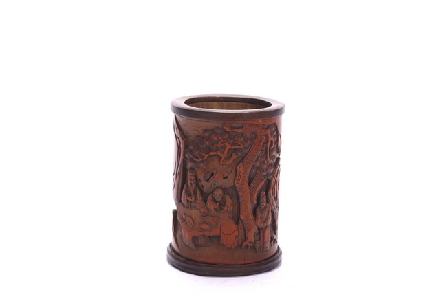 A BAMBOO CARVED 'FIGURES' BRUSHPOT 竹雕浮雕人物紋筆筒