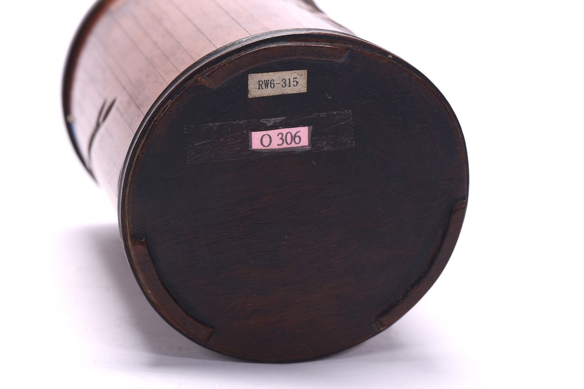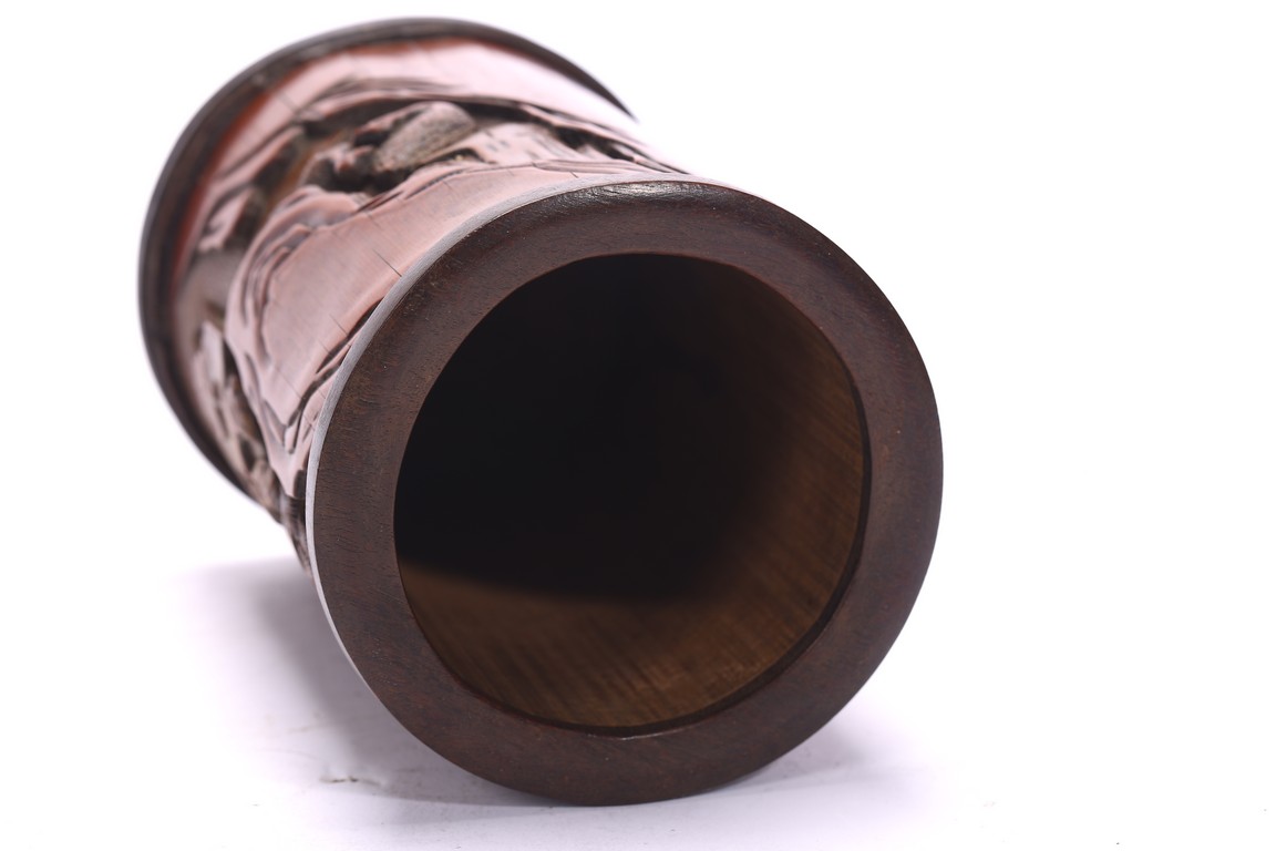 Of cylindrical form, the exterior carved in relief with figures and landscape.