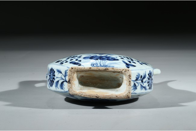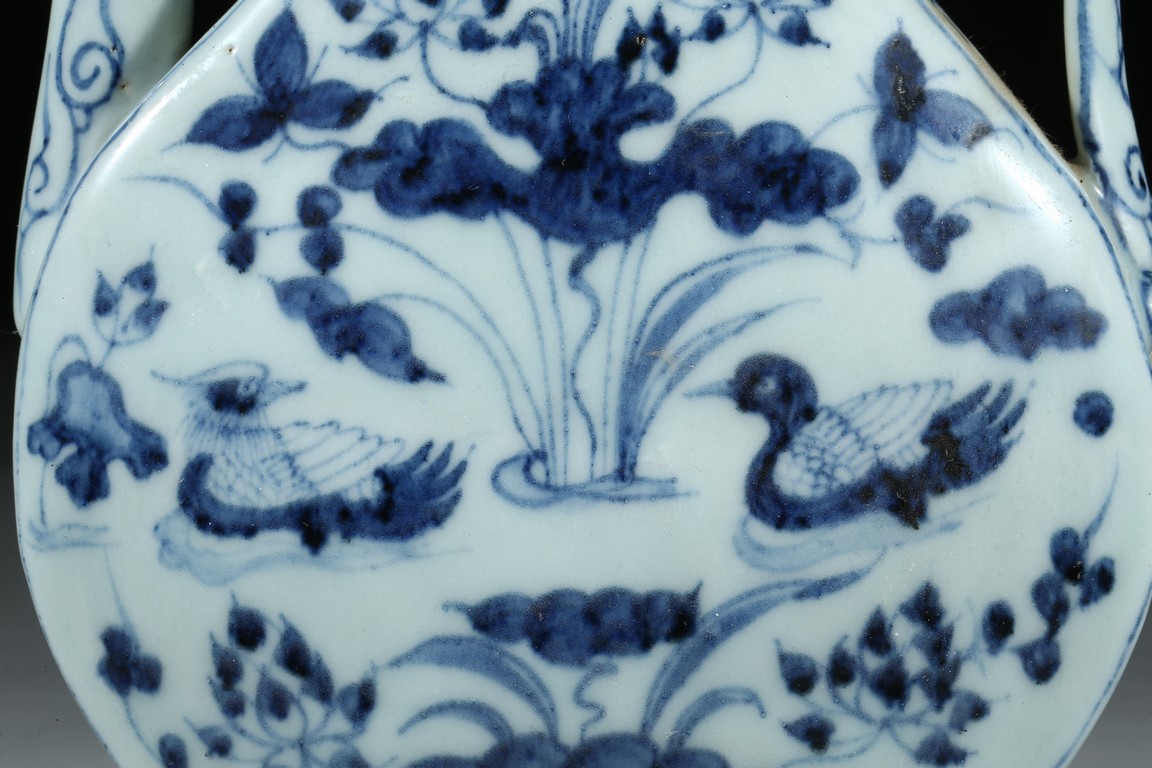 Of flattened pear shape, the body painted with a pair mandarin ducks swimming in a pond, fitted with a cover with finial. Ming Dynasty period.