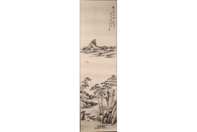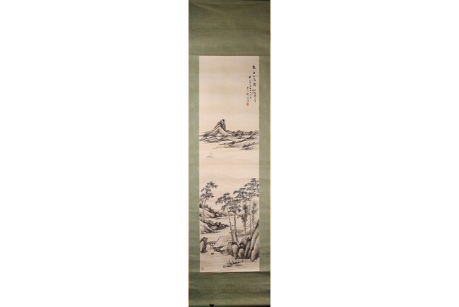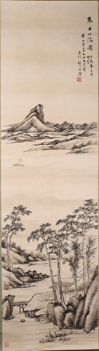 A CHINESE INK ON PAPER LANDSCAPE PAINTING, FANG QI 方啟 高士小隱圖 水墨紙本 立軸