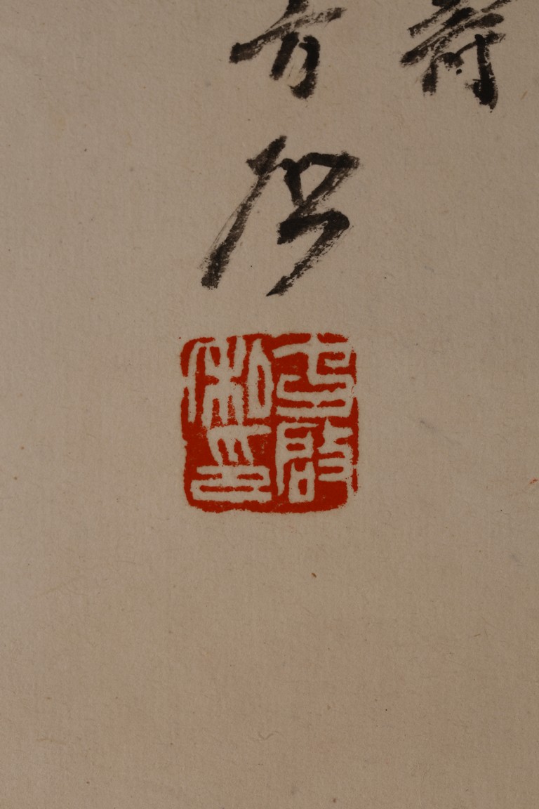 Ink on paper. Hanging scroll. Landscape. Inscribed and signed Fang Qi with two seal marks.
