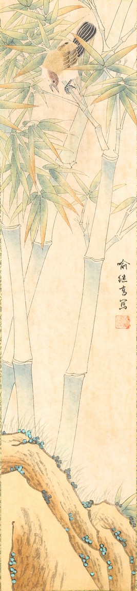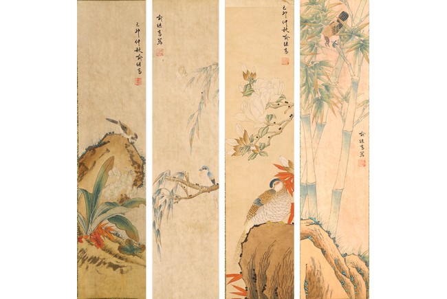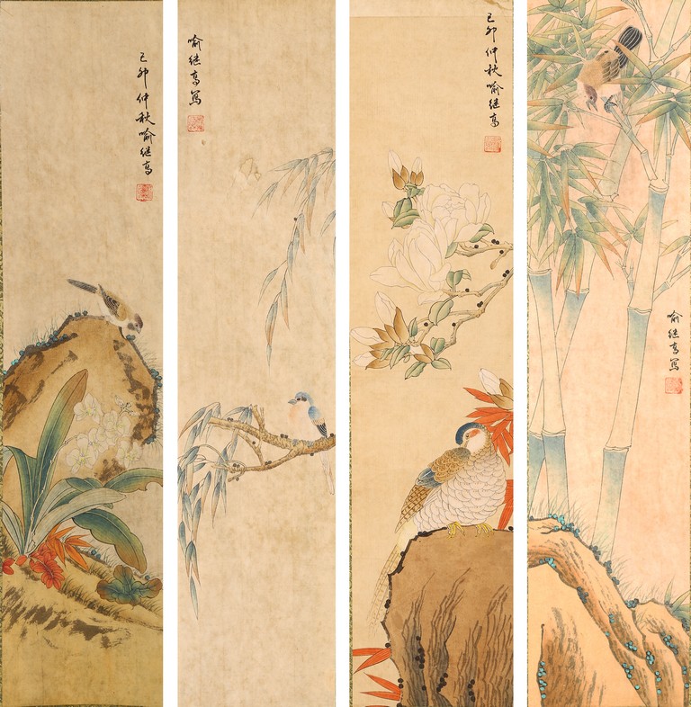 A SET OF FOUR COLOR AND INK ON PAPER SCROLLS 喻繼高 花鳥四屏 立軸