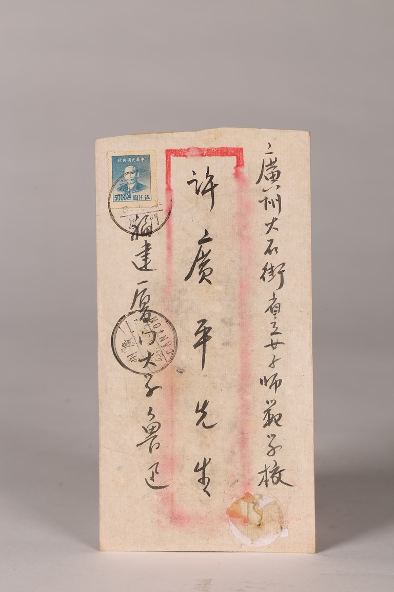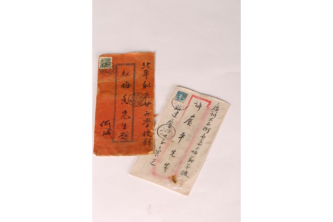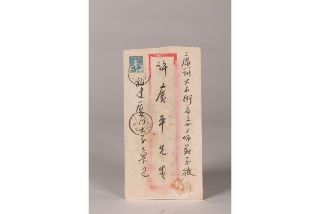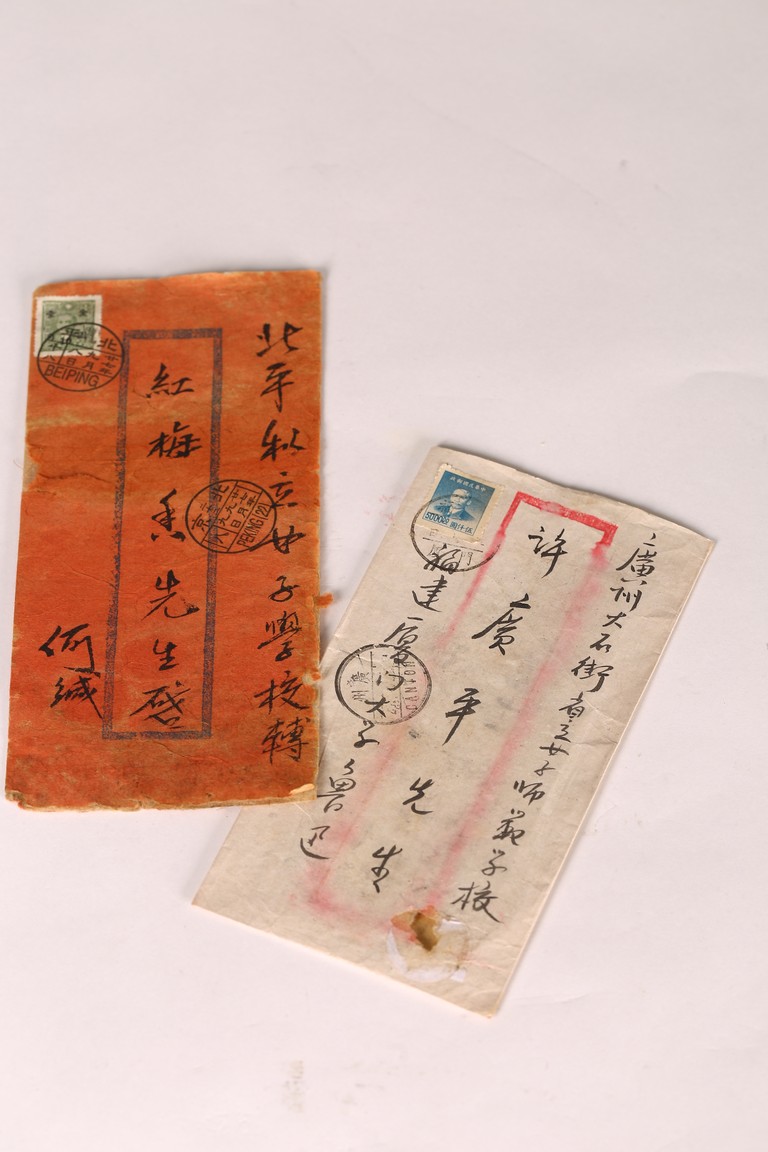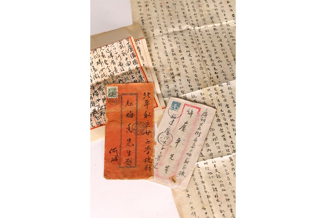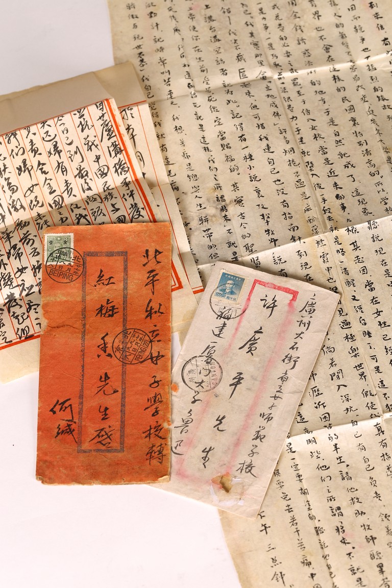 Group of five letters and envelopes. Signed Lu Xun and He Jian.
