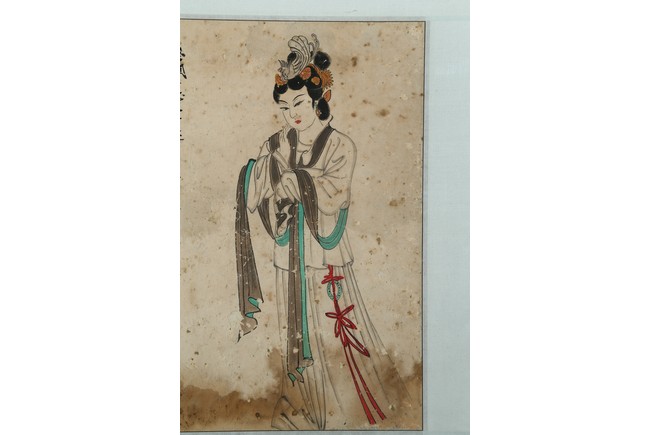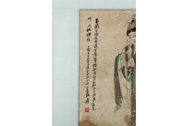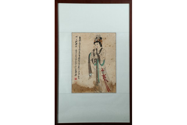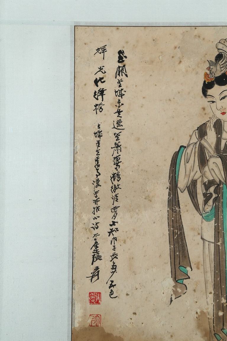 AN INK AND COLOR ON PAPER 'BEAUTY' PAINTING    張大千 仕女像 鏡框 設色紙本