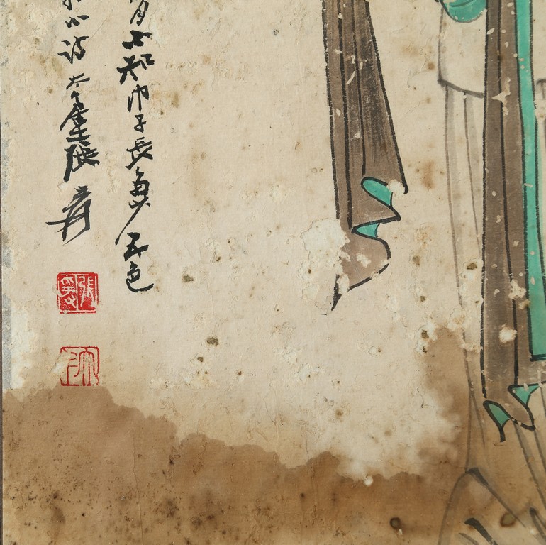 Ink and color on paper. Beauty. Framed. Inscribed and signed Daqian Jushi Zhang Yuan with two seals of the artist.