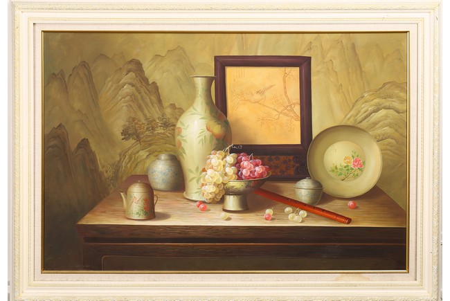 A FRAMED OIL ON CANVAS ‘STILL LIFE’ PAINTING 匿名 靜物 油畫 鏡框