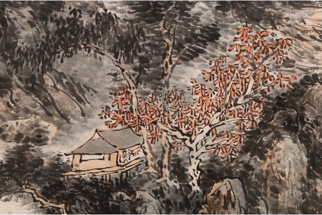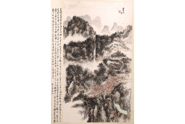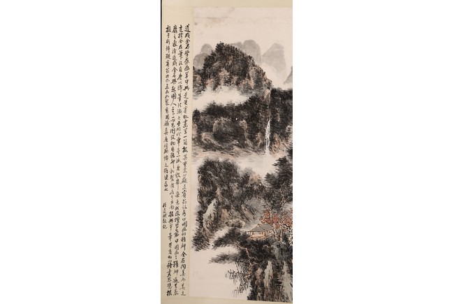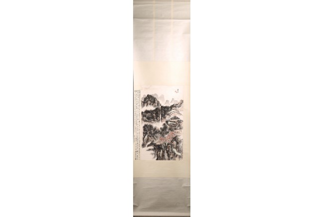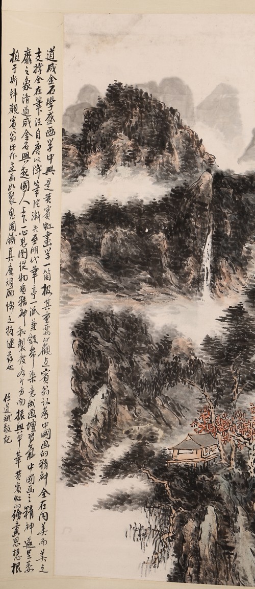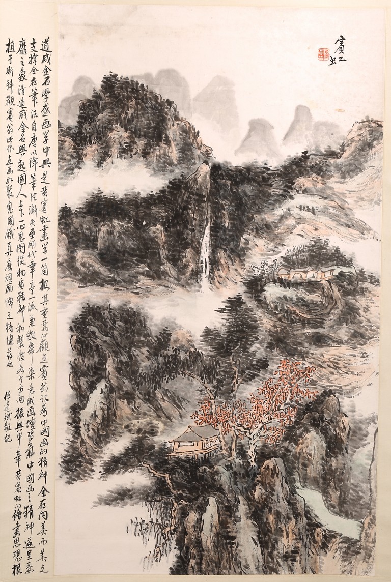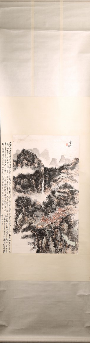 Chinese School.Color and ink on paper. Hanging scroll. Landscape. Signed Binhong with one seal of the artist. The side with colophon and signed. Attributed to Huang binhong.