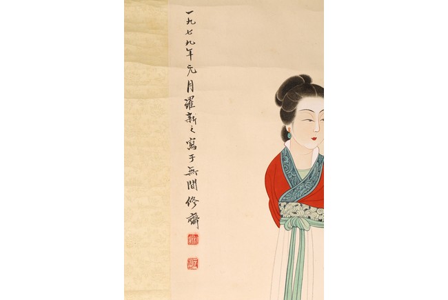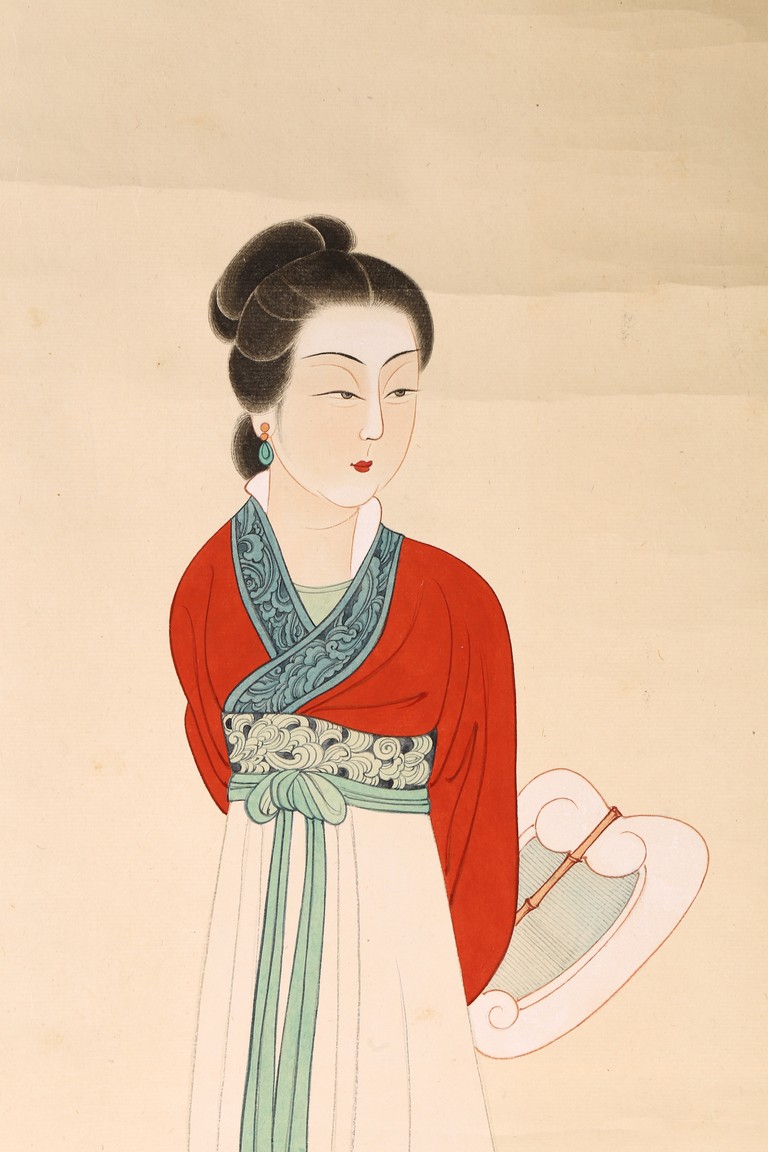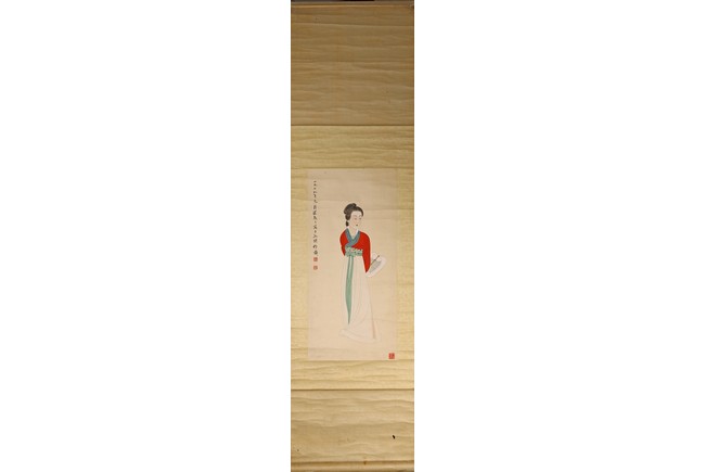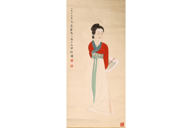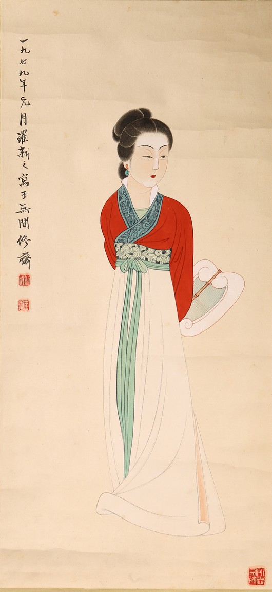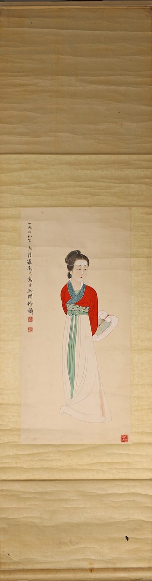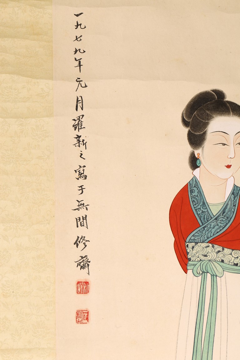 COLOR AND INK 'BEAUTY' PAINTING, LUO XINZHI(1906-1990) 羅新之(1906-1990) 仕女 設色紙本 立軸