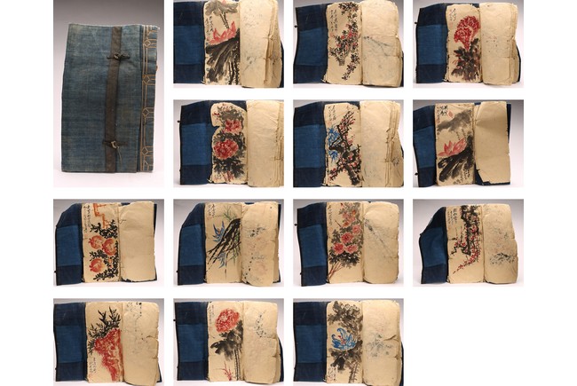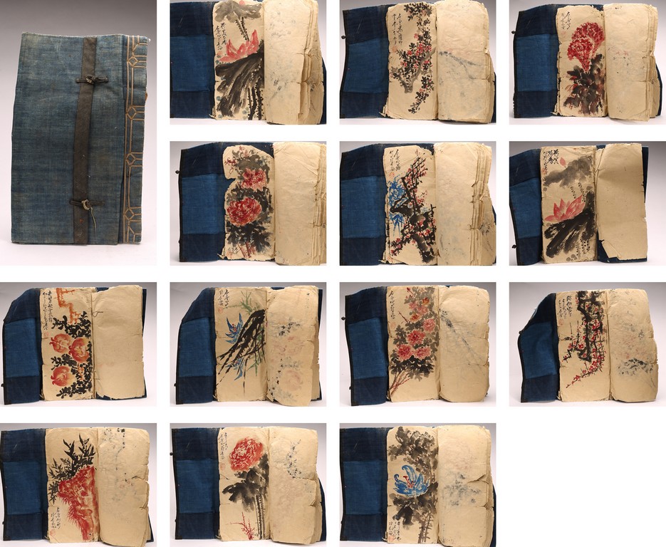 Color and ink on paper. Flowers. Thirteen leaf album. Each inscribed and signed Shilu, each with one seal mark.