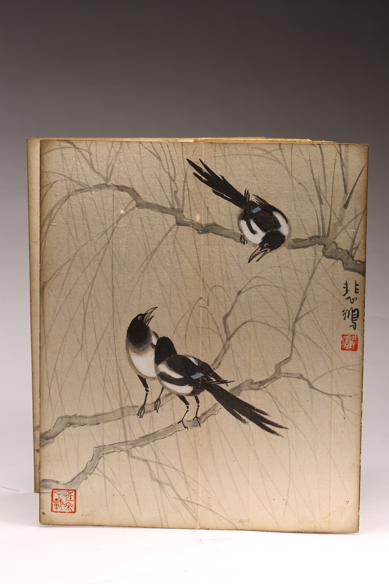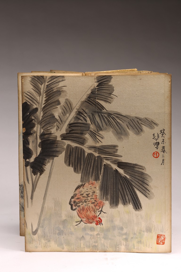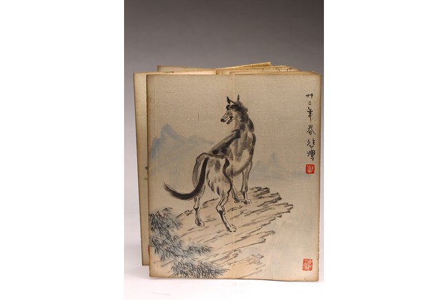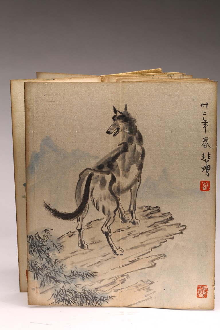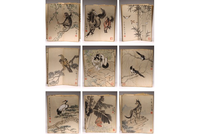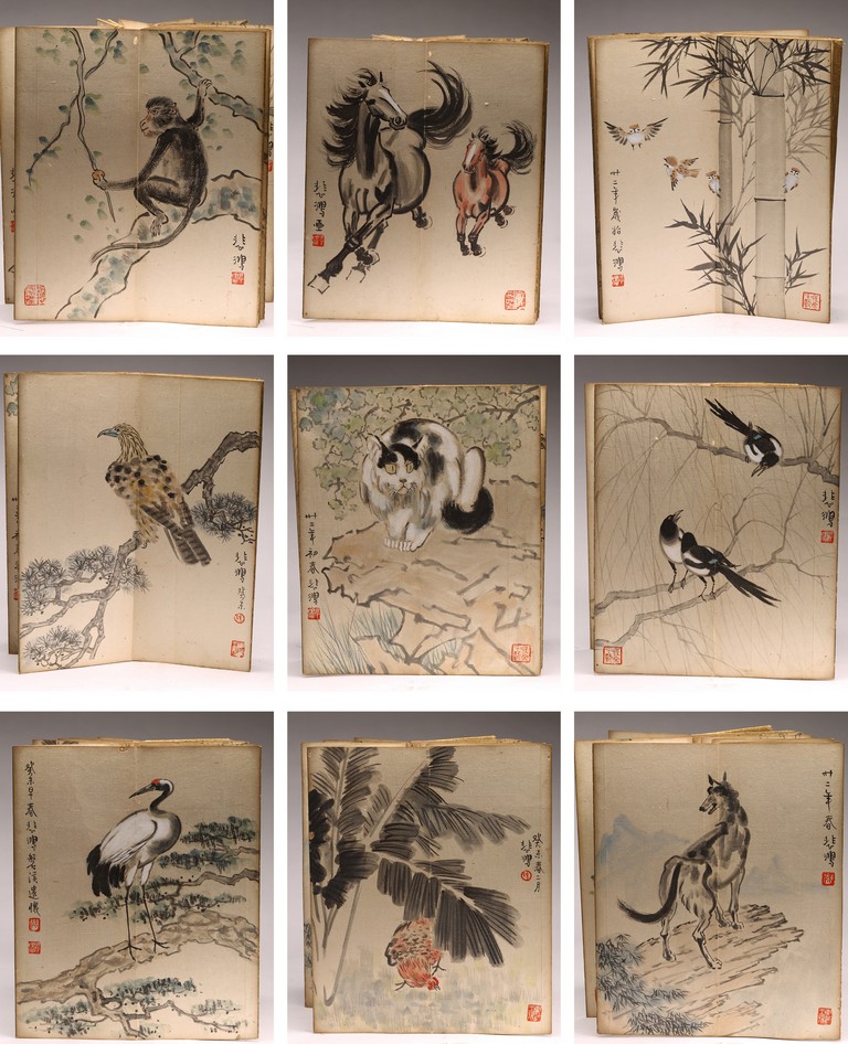 COLOR AND INK 'ANIMALS & BIRDS' ALBUM, XU BEIHONG(1895-1953) 徐悲鴻(1895-1953) 花鳥走獸 設色紙本 冊頁九開