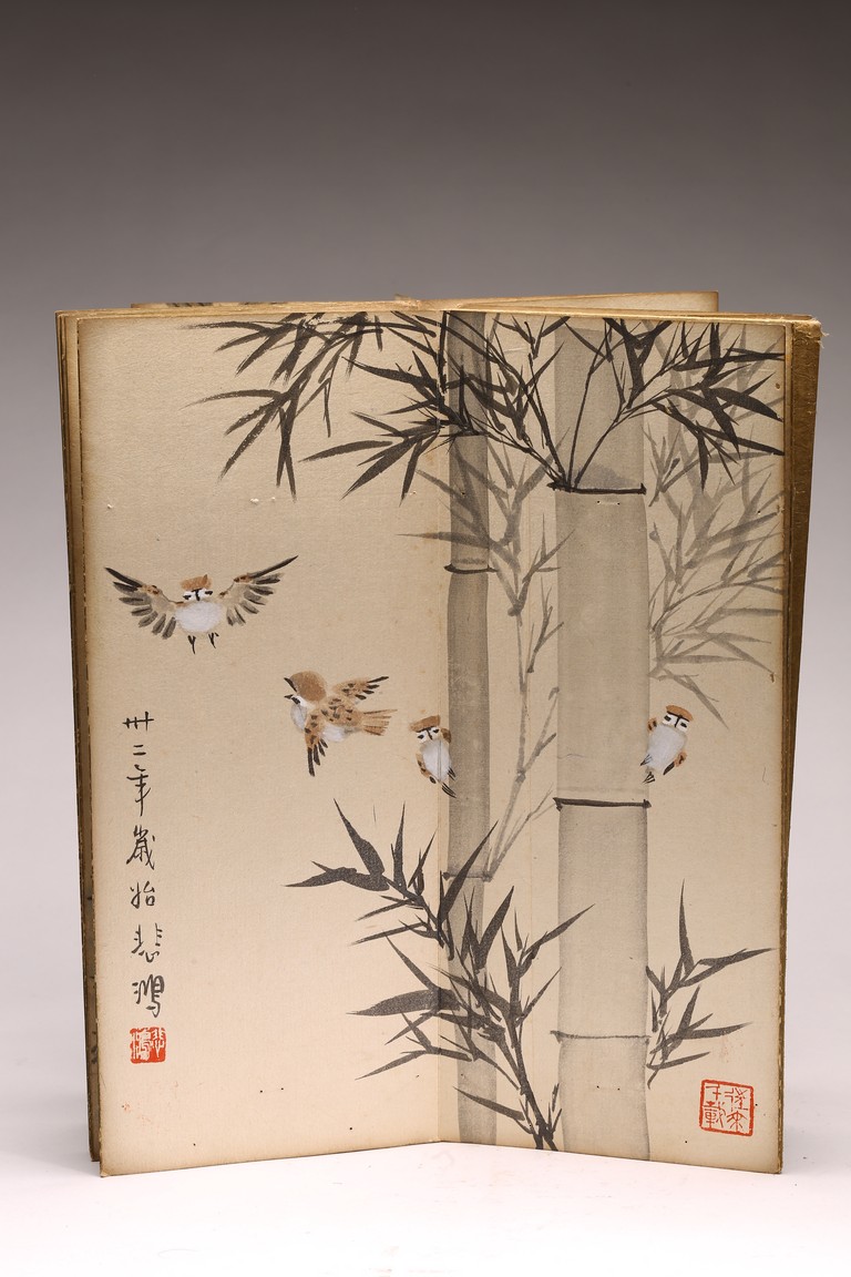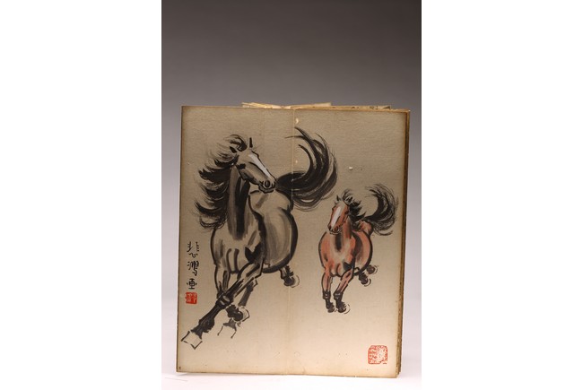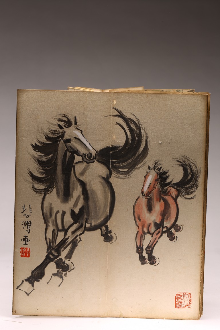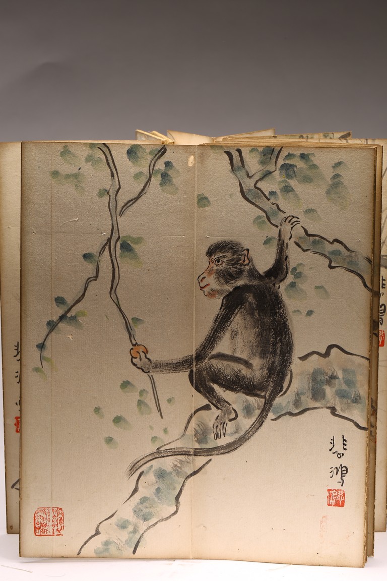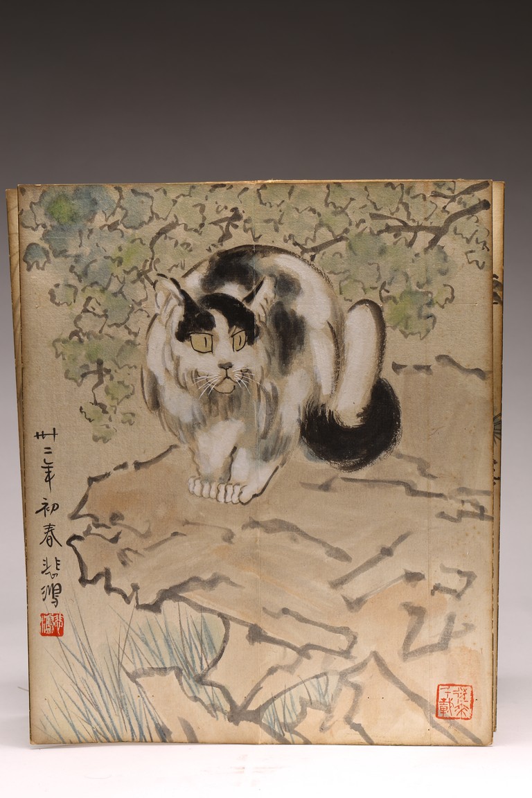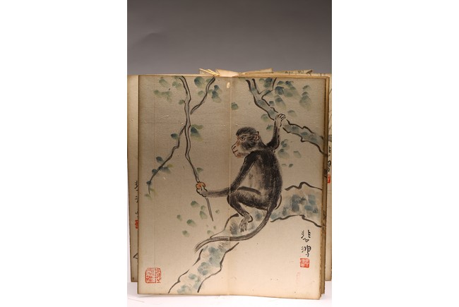 COLOR AND INK 'ANIMALS & BIRDS' ALBUM, XU BEIHONG(1895-1953) 徐悲鴻(1895-1953) 花鳥走獸 設色紙本 冊頁九開