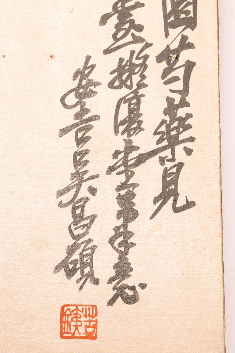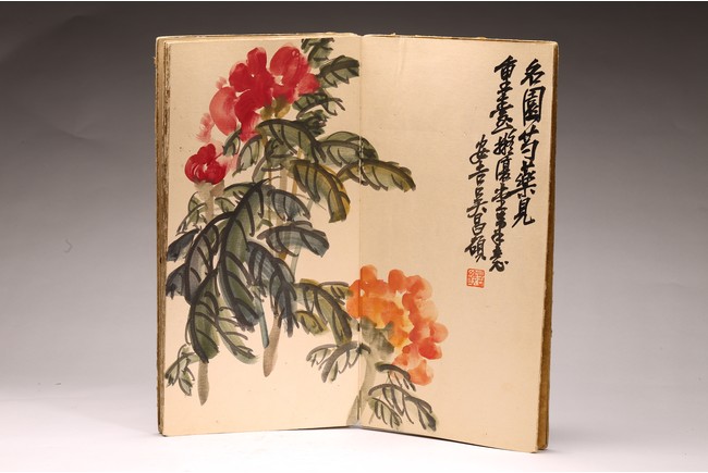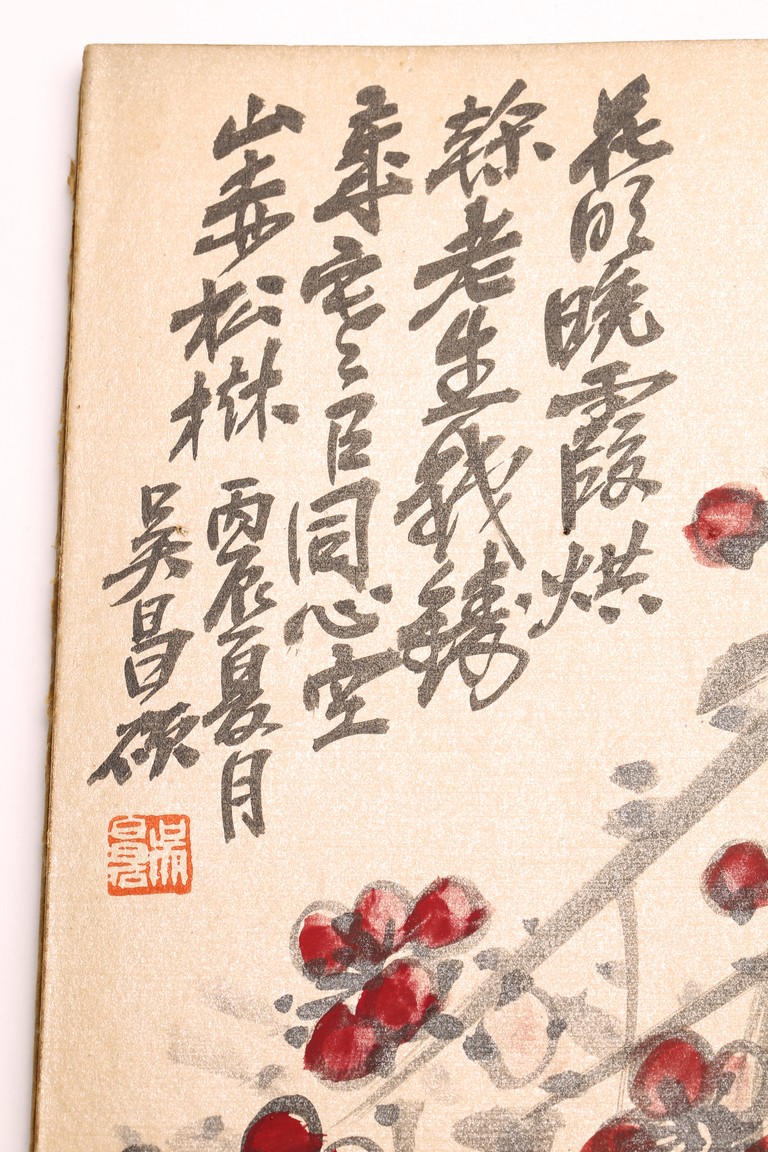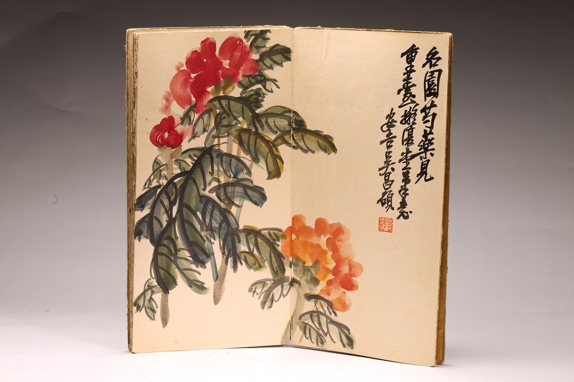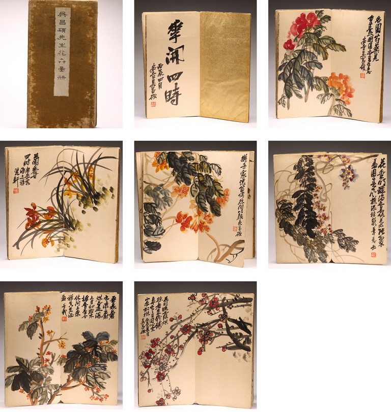 Color and ink on paper. Flowers. Six leaf album. Each inscribed and signed Wu Changshuo, each with one seal mark.
