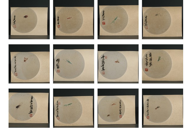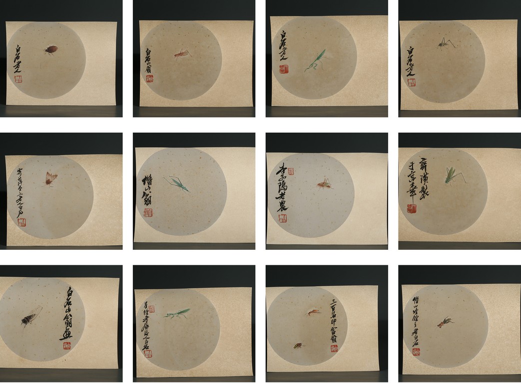 Color and ink on paper. Album. Twelve-leaf. 'insect', each with inscription and signed, with 1-2 seal marks on each leaf.
