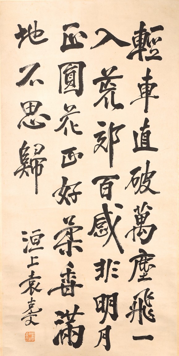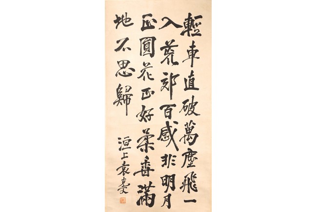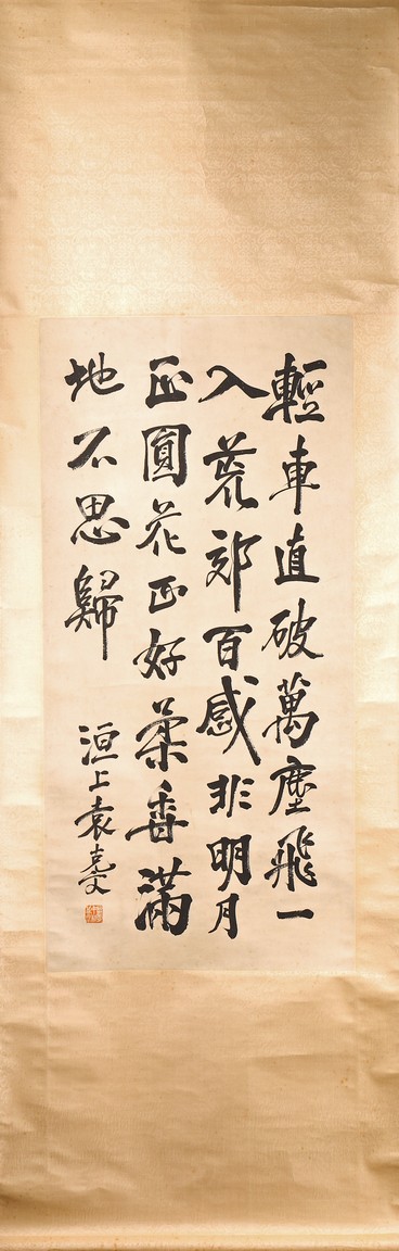 Ink on paper. Hanging scroll. Running script calligraphy. Signed Yuan Kewen, with one seal of the artist.