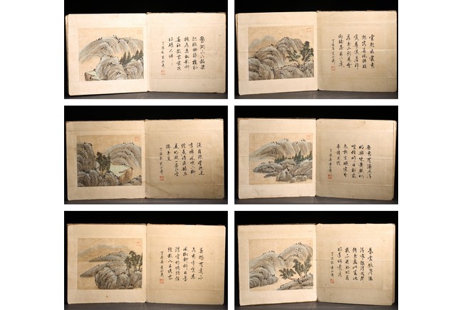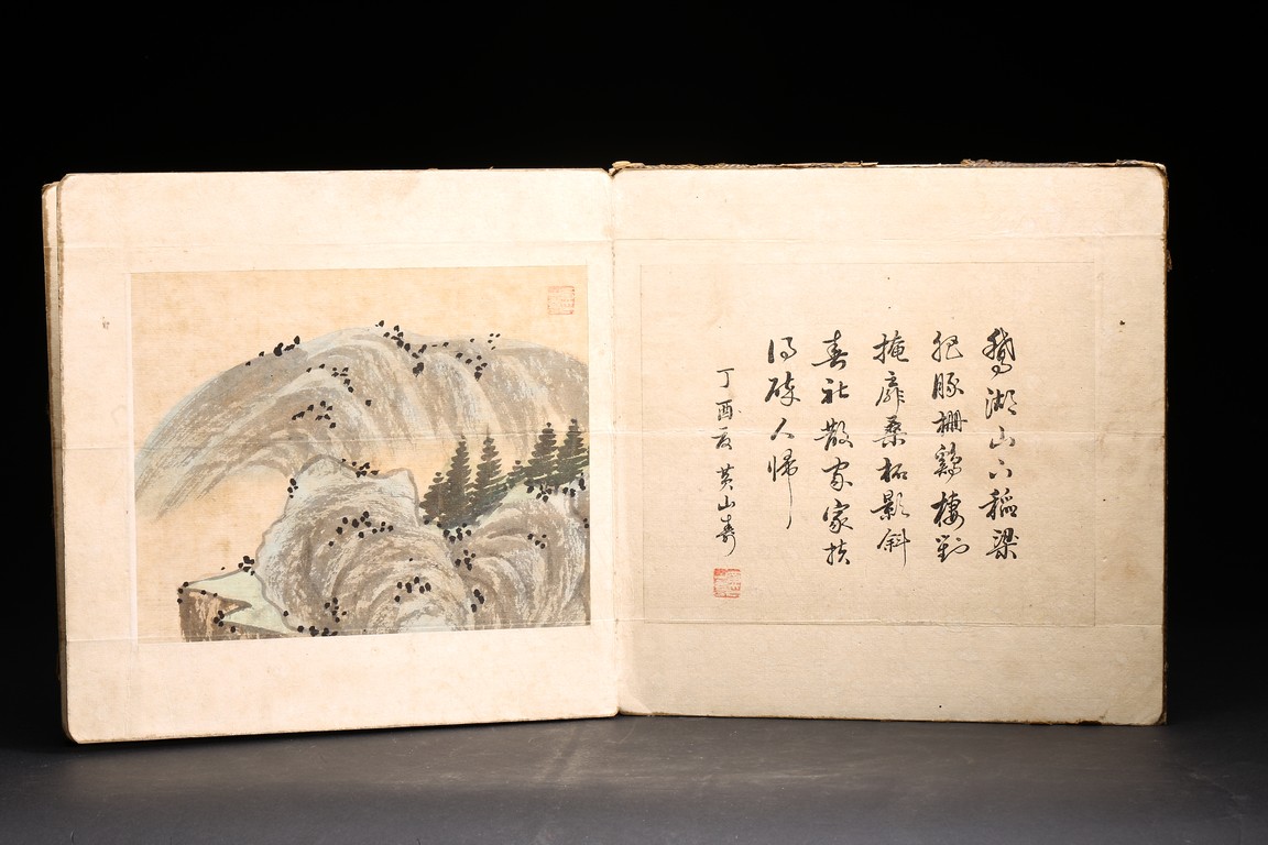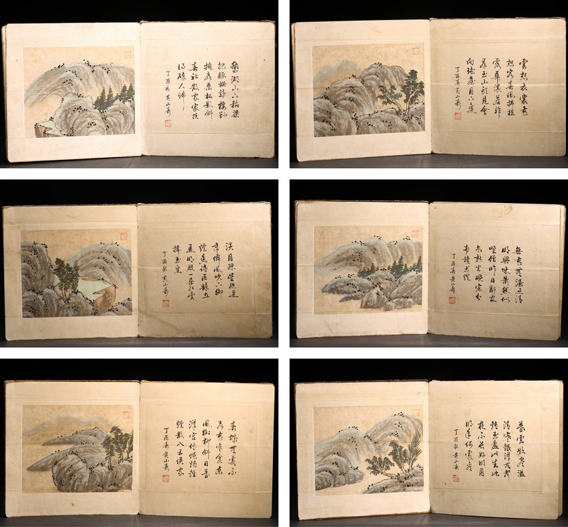 Ink and color on paper painting. Landscape. Album. Inscribed and signed with twelve seals of the artist.