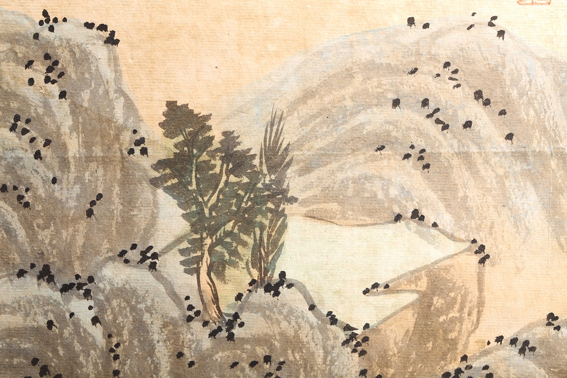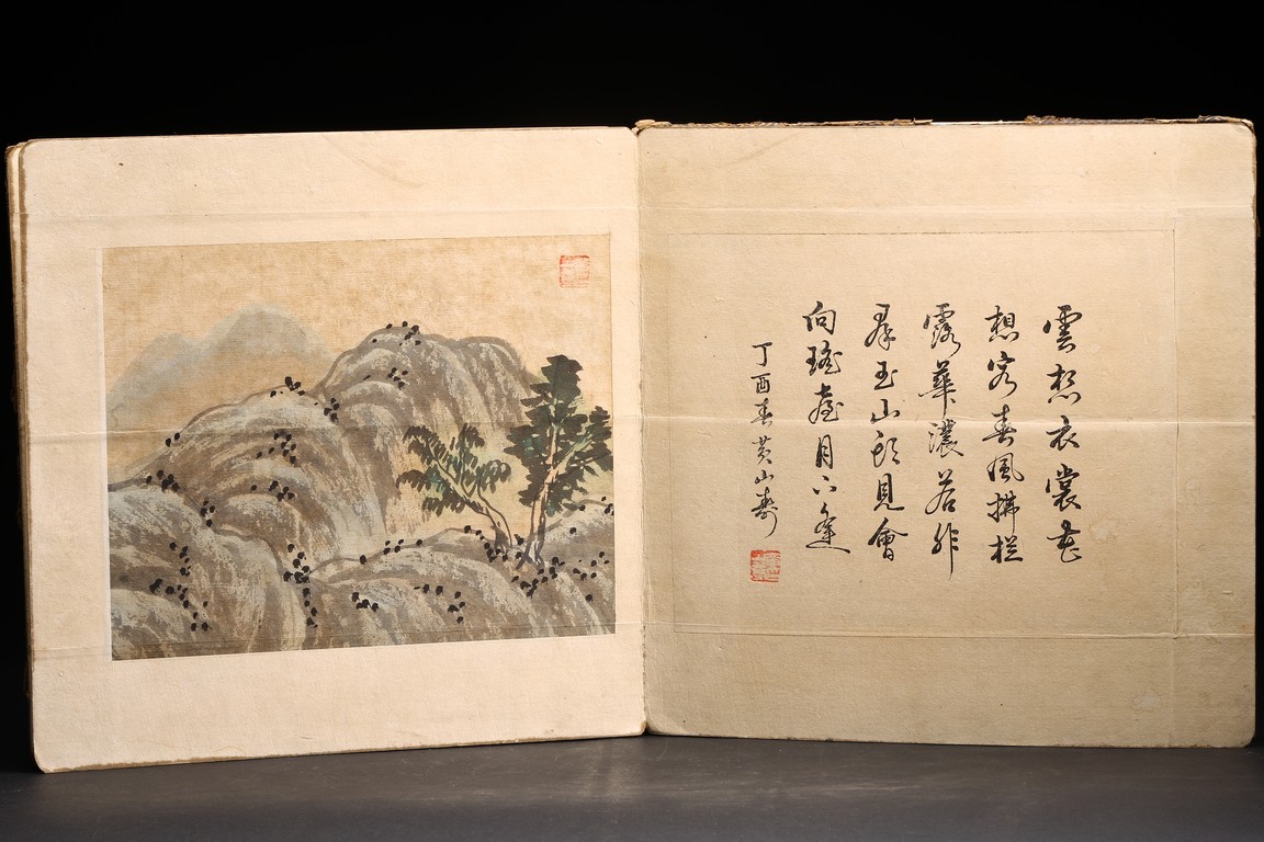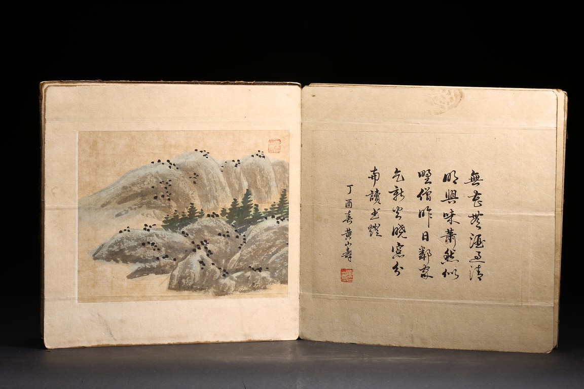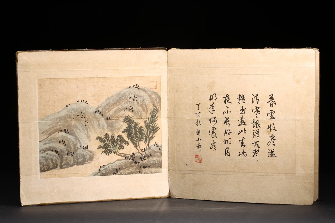HUANG SHANSHOU: INK AND COLOR ON PAPER LANDSCAPE ALBUM    黃山壽 山水冊頁 設色紙本