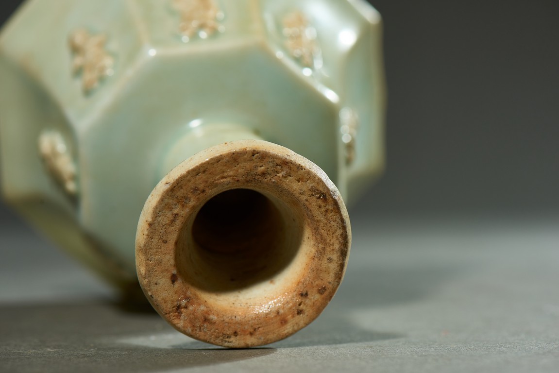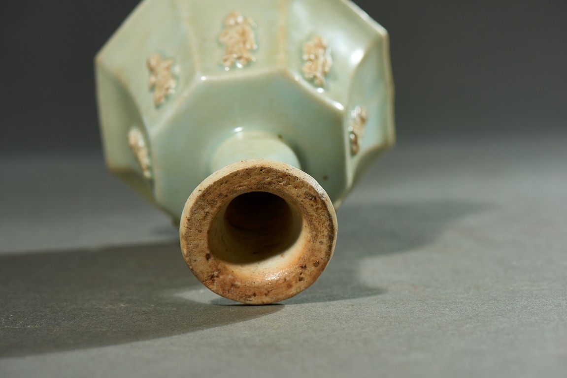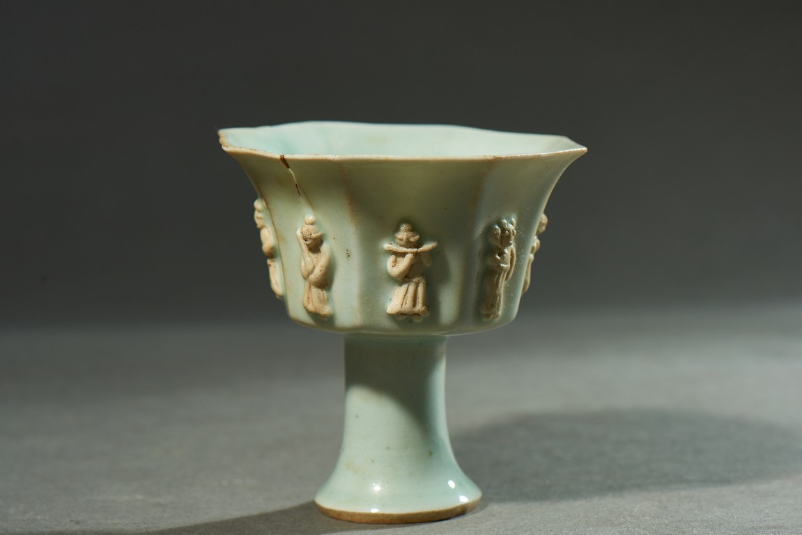 A WHITE GLAZED MOULDED 'FIGURE' CUP 清 白釉八面人物杯