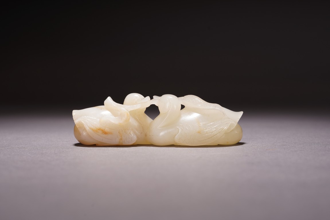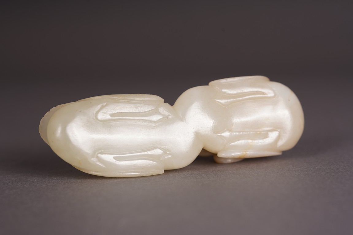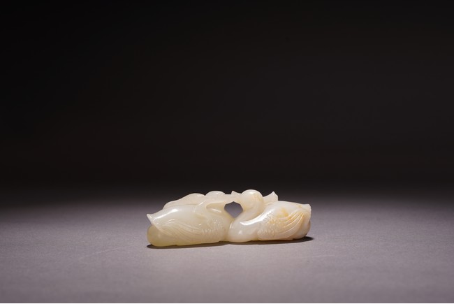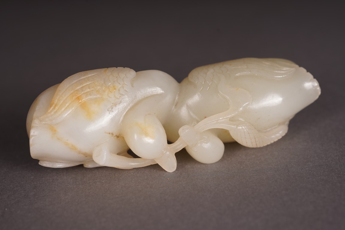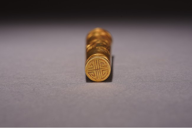 The crystal brush shaft carved with dragon in relief, completed with a gilt bronze brush cover incised with lotus decorations.