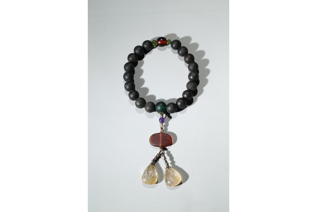 With rounded beads and crystal pendant
