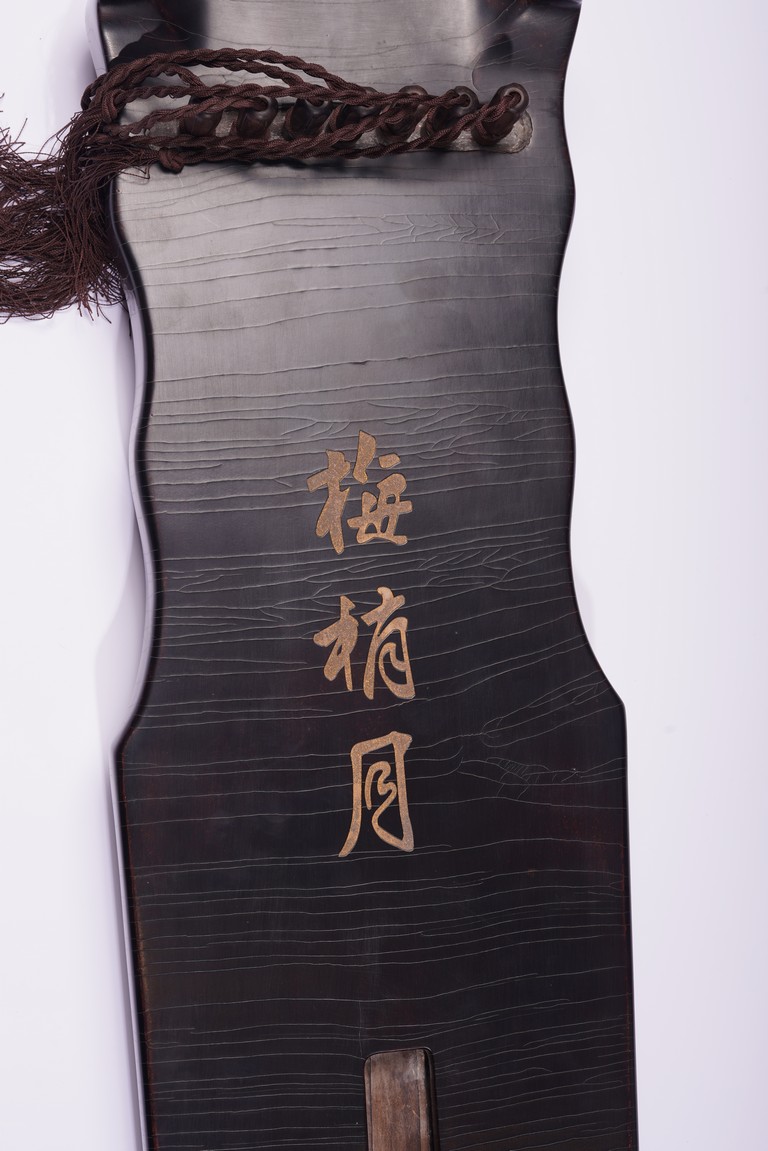 古琴連珠式,形制嚴整、端莊。通體黑漆,琴面佈滿蛇腹斷紋、蕉葉斷紋,琴底有流水斷紋。琴聲清亮有玉、含雄,餘韻極長。底部完好。琴面曾因年代久遠而重修。琴名“梅栯月”,三字為金文精刻,為不可多得之妙品。 来源:洛杉磯私人藏家提供 Provenance: Property from a private collection, Los Angeles