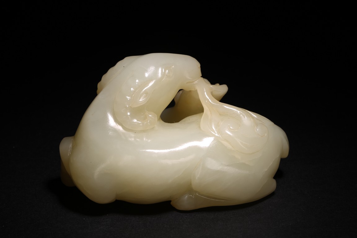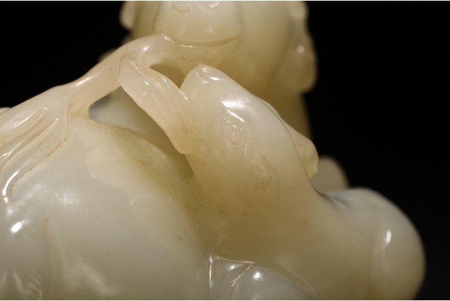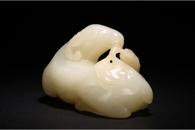 玉質潔白溫潤,純凈無暇。精雕的三隻羊姿態各異,寓意三羊開泰。情景生動討喜。三陽開泰是祝頌新春的賀詞,代表吉祥如意。表示三陽已生,否極泰來,即情況由壞變好,一切都向好的方向發展。由於“羊”和“陽”同音,所以後來人們又把“三陽開泰”寫成“三羊開泰”。