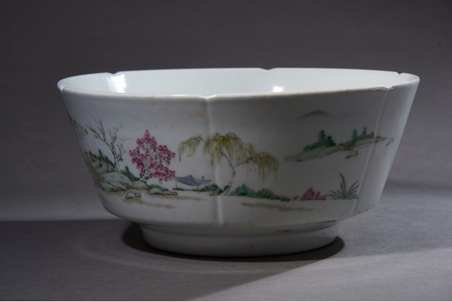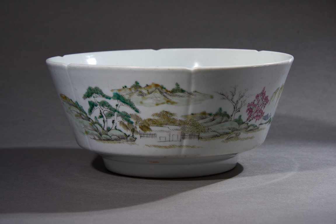 A LARGE FAMILLE ROSE 'LANDSCAPE' BOWL 民國 粉彩山水紋大碗