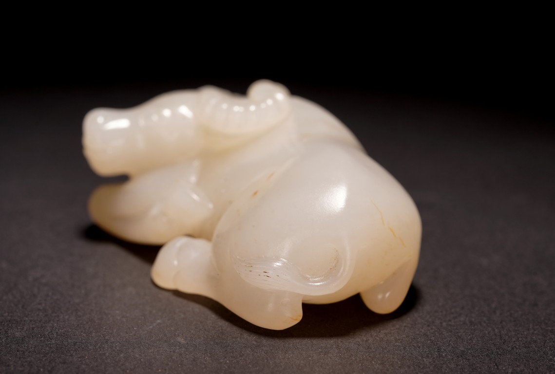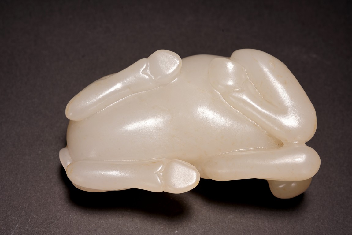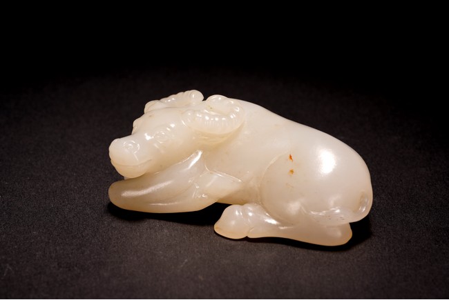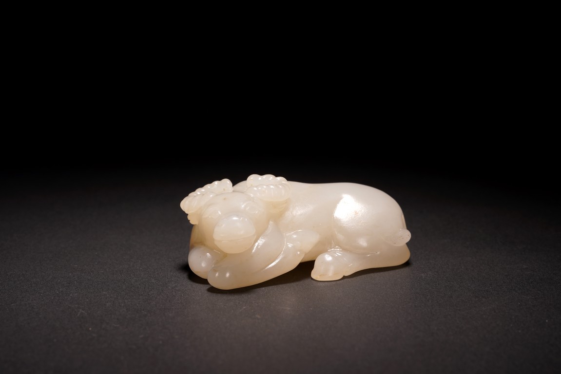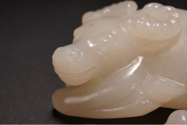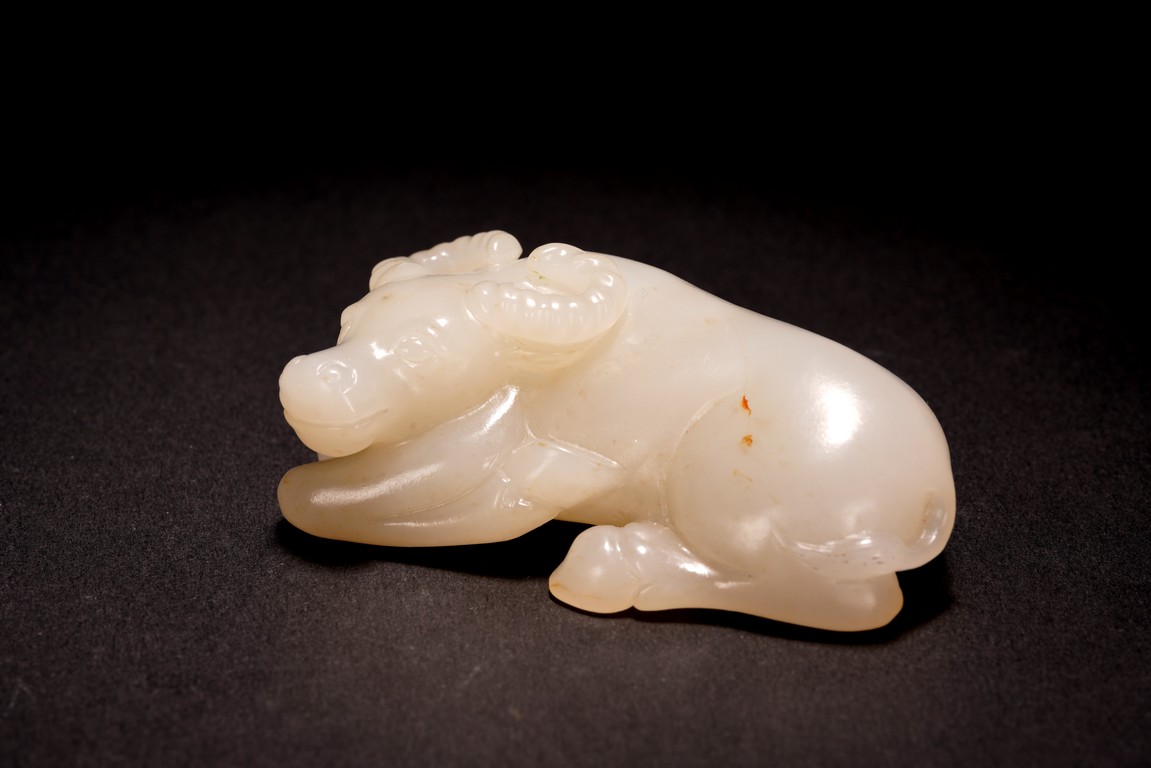 Carved in the form of recumbent buffalo, the stone is of even smooth white tone.