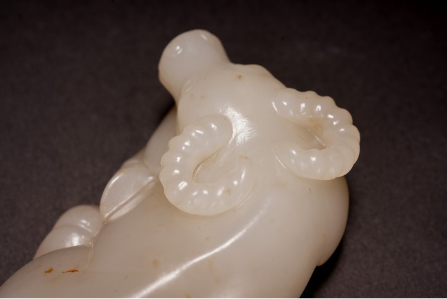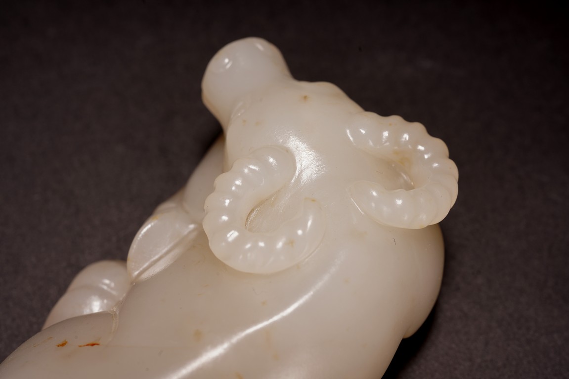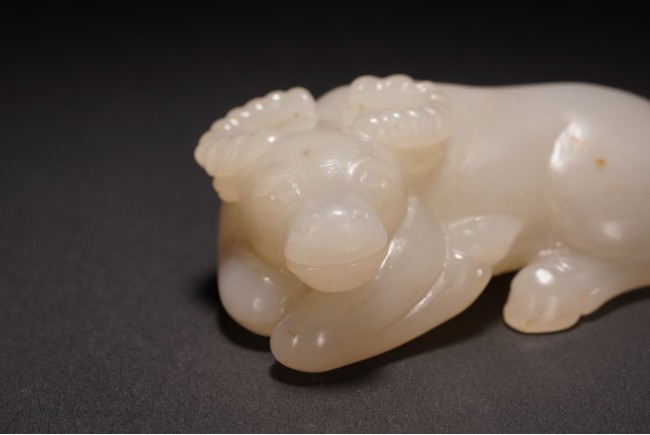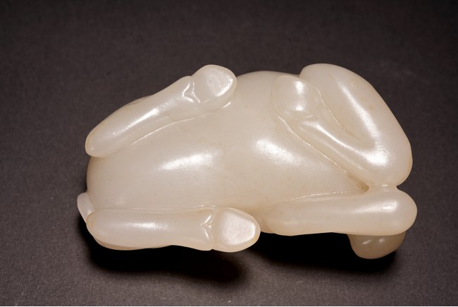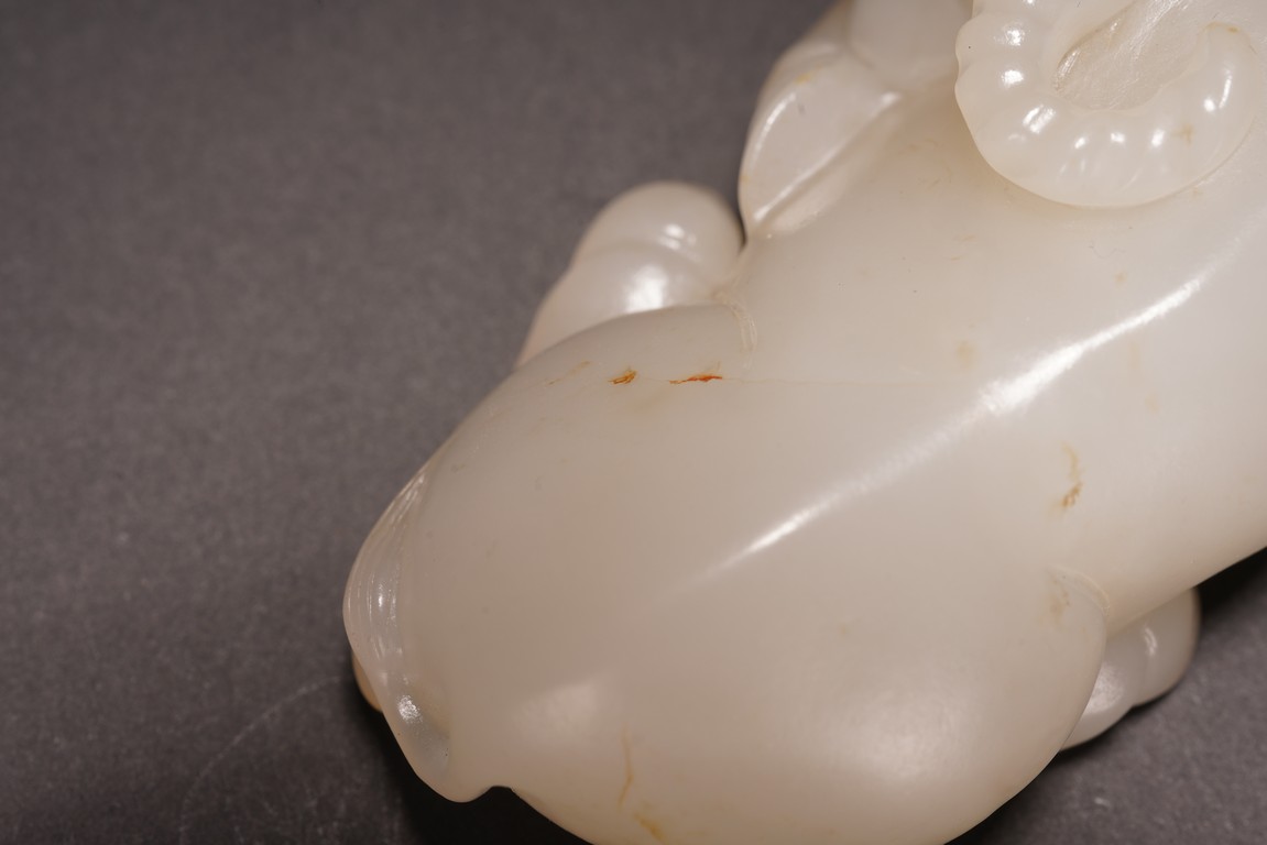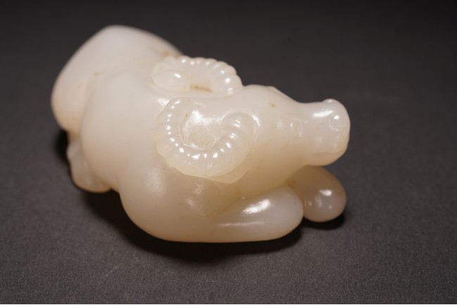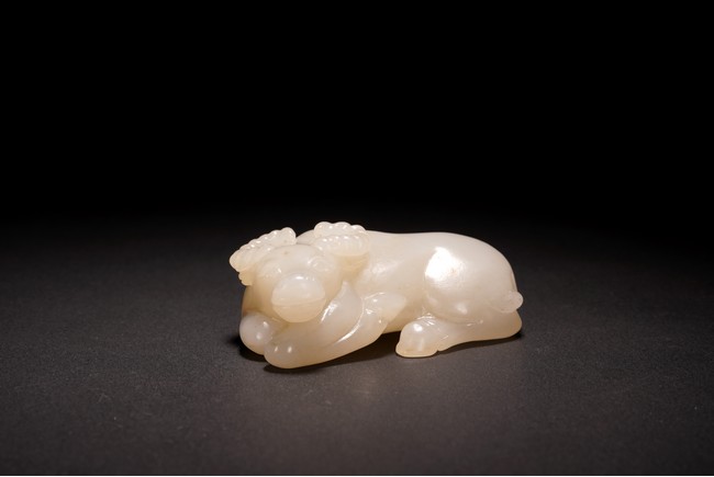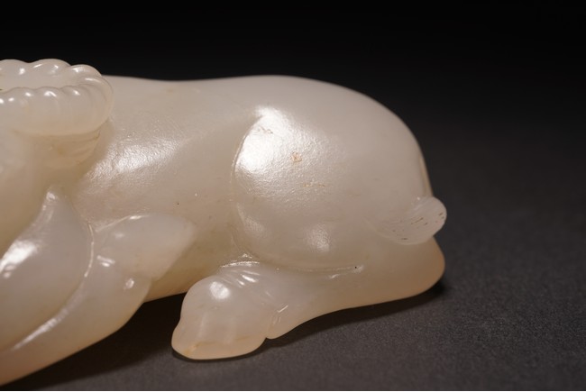 Carved in the form of recumbent buffalo, the stone is of even smooth white tone.