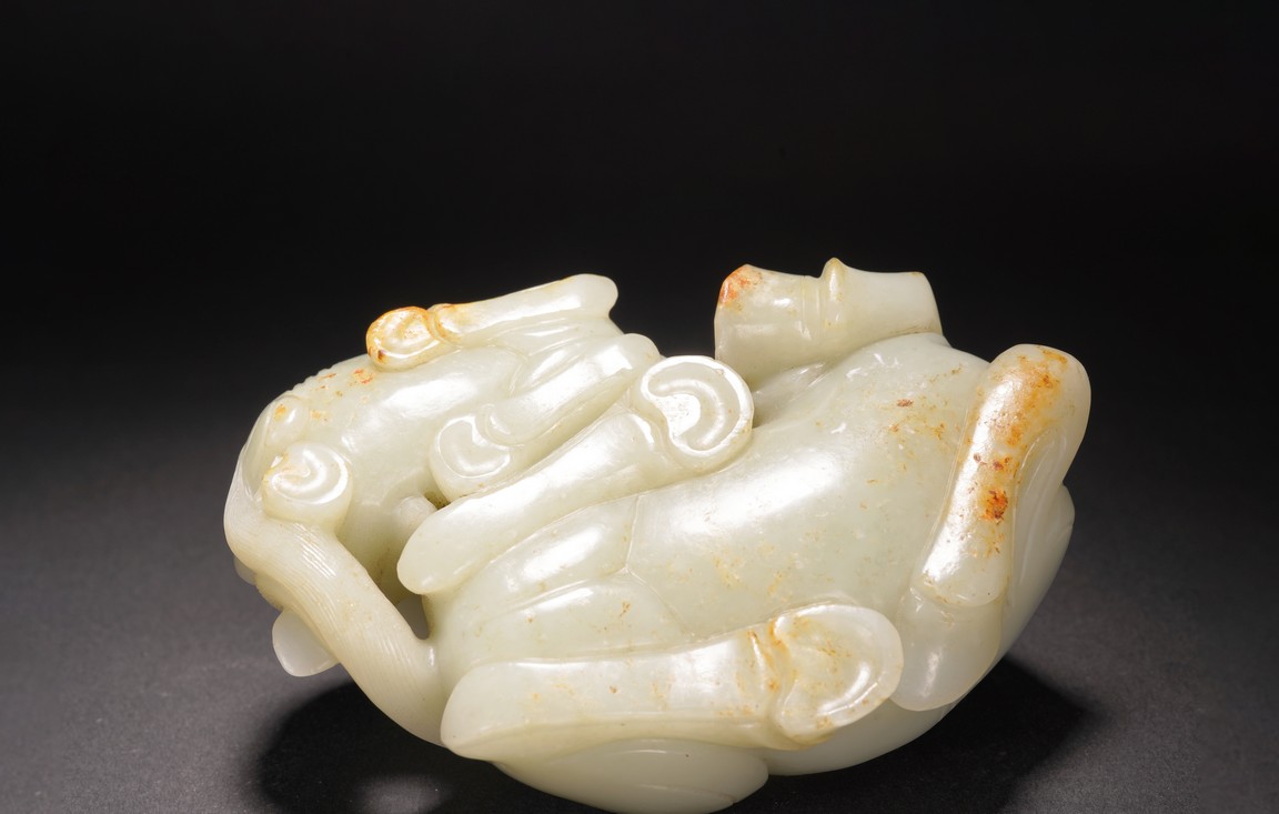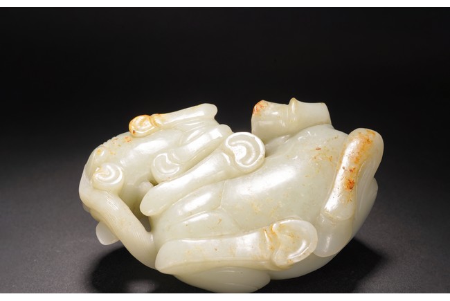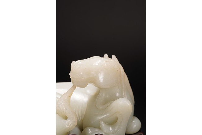 此擺件以和田白玉大料為材,採用圓雕、剔刻工藝雕就子母臥馬擺件,刀工利落剛勁,雕刻細緻傳神,神態、姿勢自然舒服,乾淨灑脫,韻味十足。整體玉質溫潤細膩,形制飽滿,選材上乘,用料厚實,包漿自然,配紅木底托,為難得的精品擺件。馬是吉祥的寓意,賦有諸多美好寓意。“馬到功成”、“馬上封侯”、“一馬當先”等成語傳達出古人美滿的祝願,因而馬也成為人們喜聞樂見的裝飾題材。明清兩代,玉質臥馬深受文人喜愛,可作文房書案紙鎮器物,亦可陳設賞玩,意趣十足。 來源:紐約重要私人藏家收藏。類似藏品請參考紐約大都會博物館藏清中期白玉臥馬 Provenance: Property from an important collection, New York. For similar horse jade carving, refer to collection in Metropolitan Museum of Art