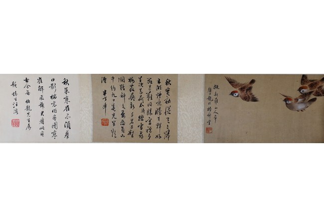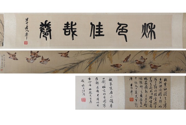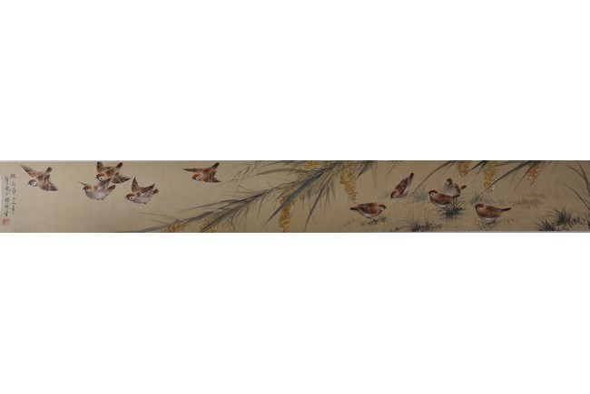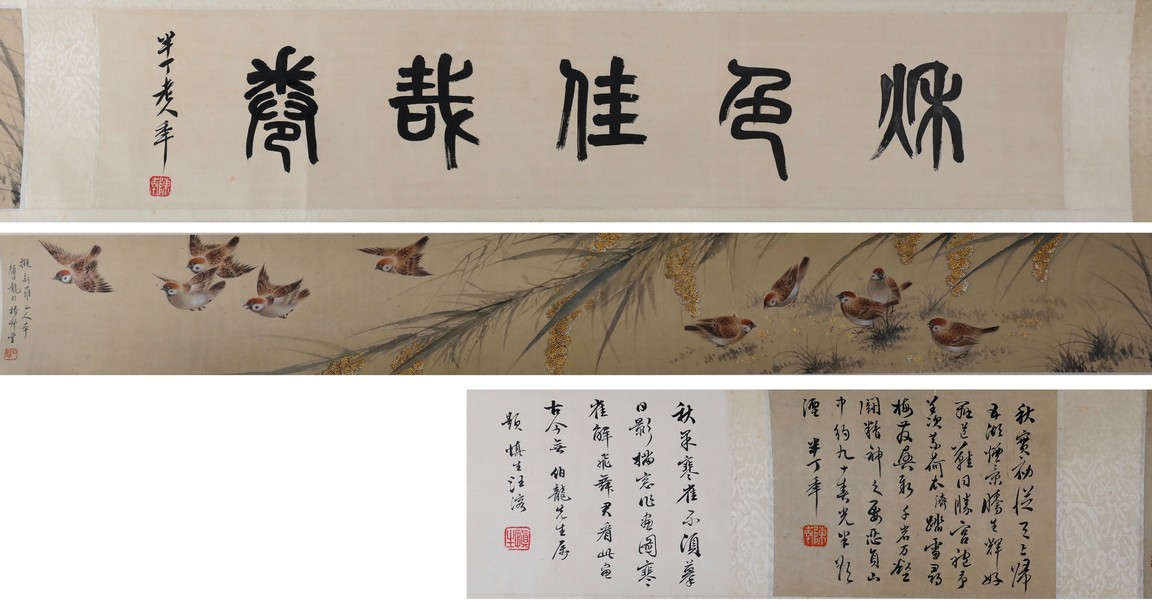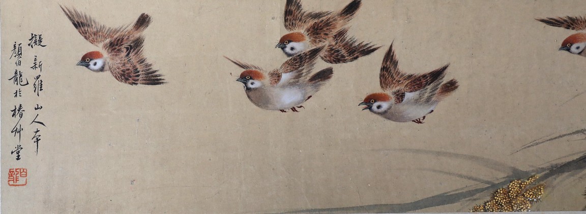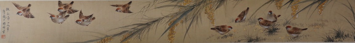 A COLOR AND INK ON PAPER 'SPARROWS' PAINTING 顏伯龍 麻雀圖 設色紙本 手卷