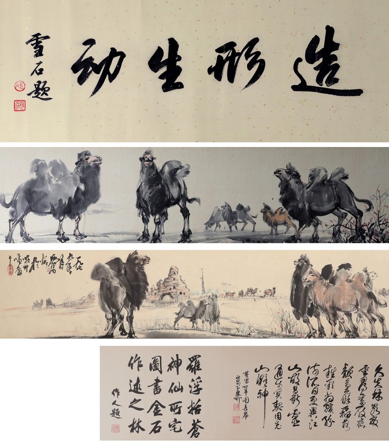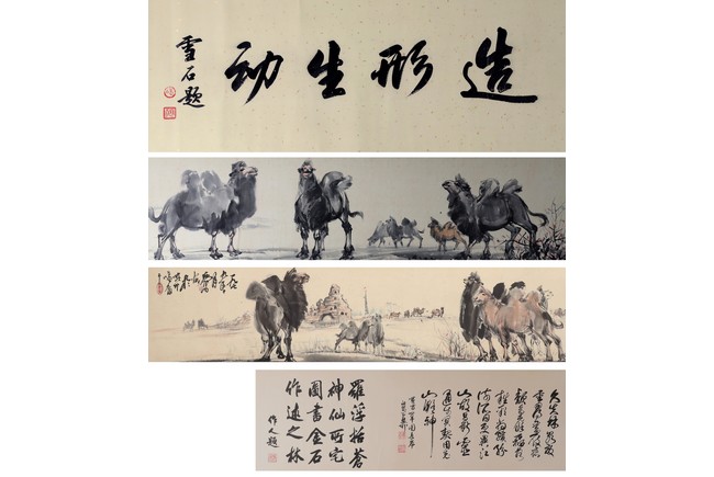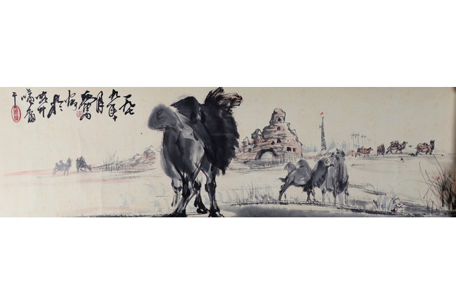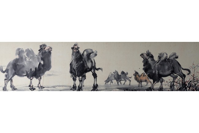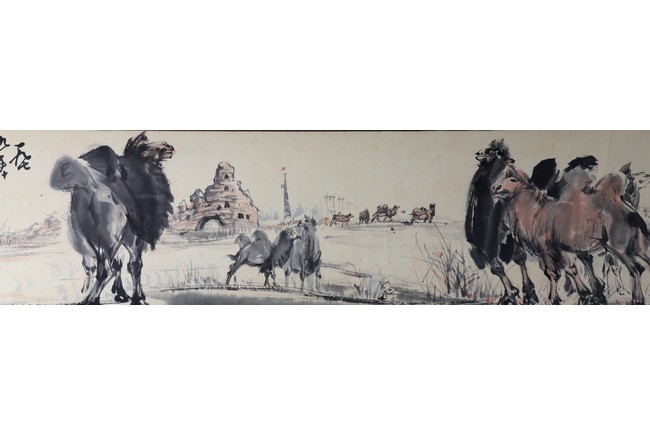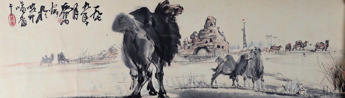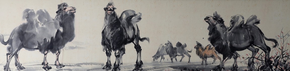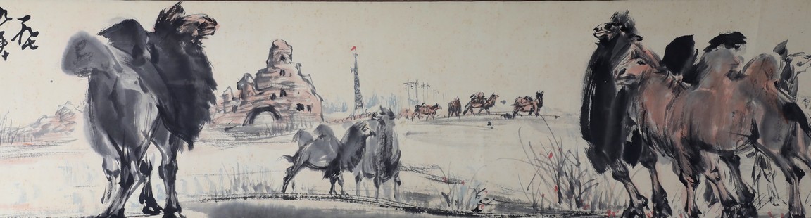 A COLOR AND INK ON PAPER 'CAMELS' HANDSCROLL 黃冑 駱駝 設色紙本 手卷