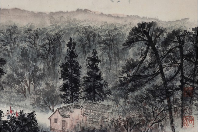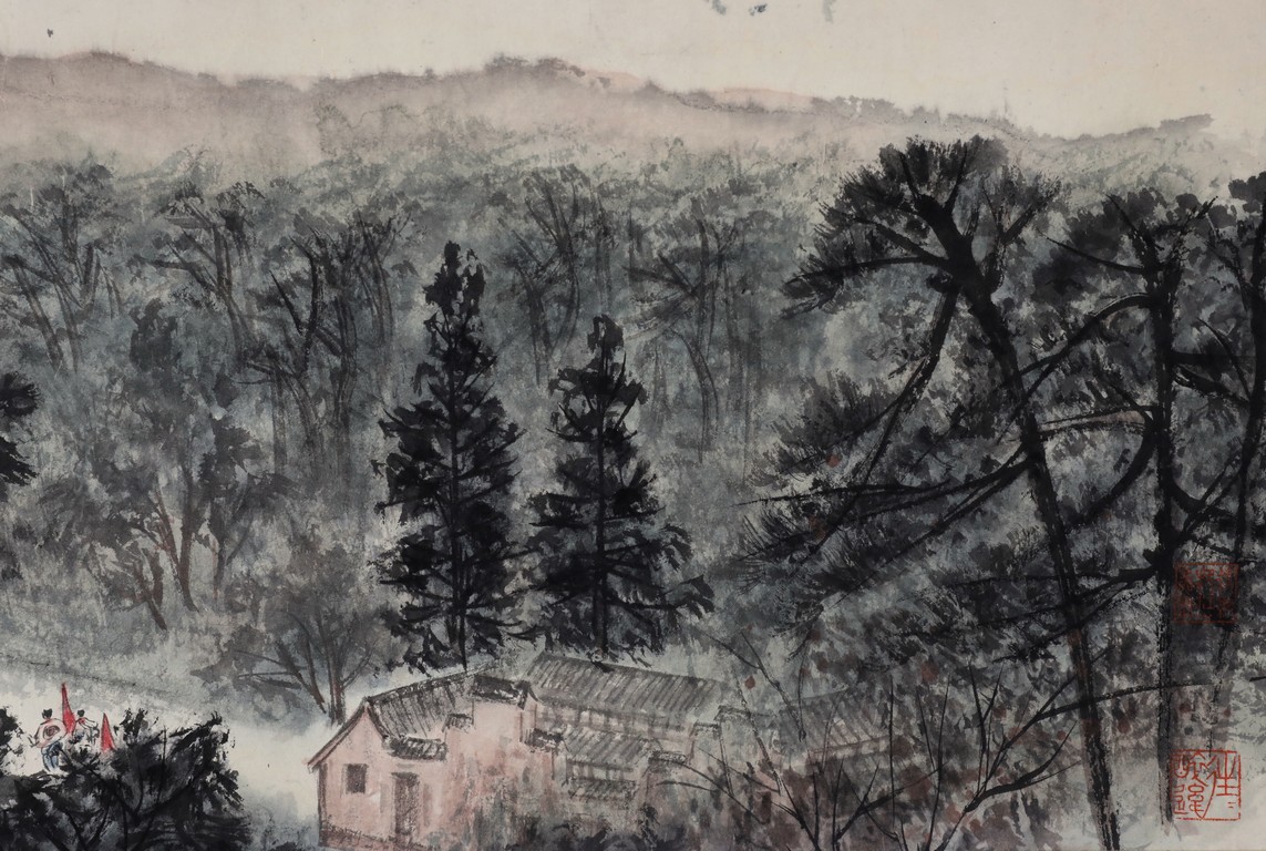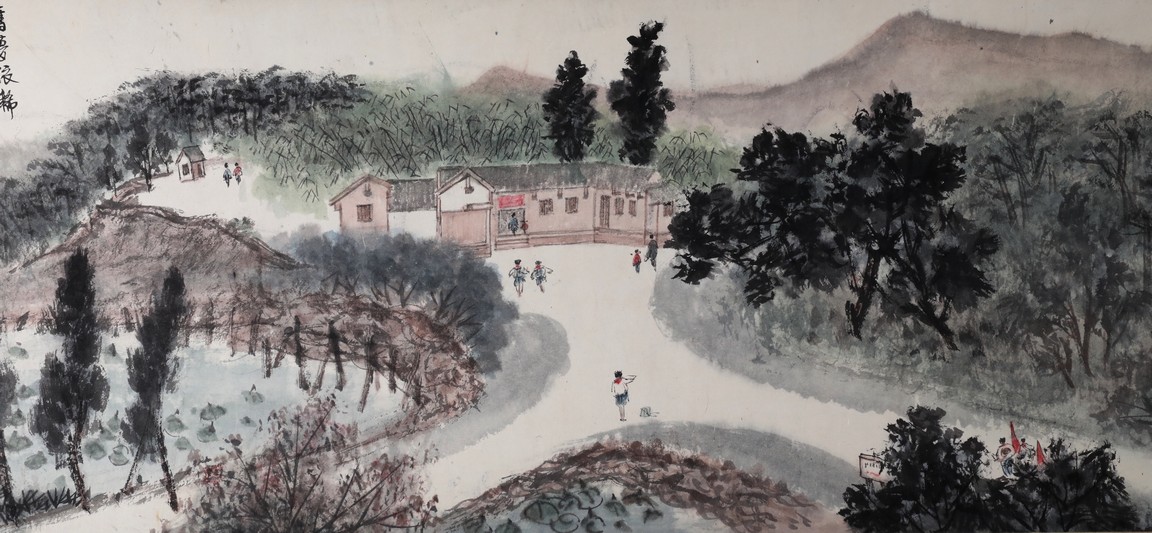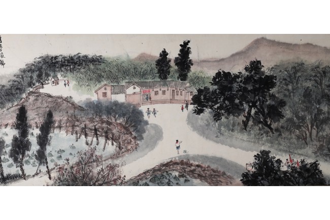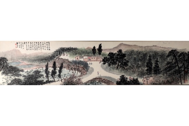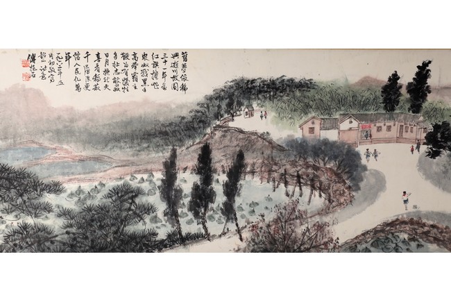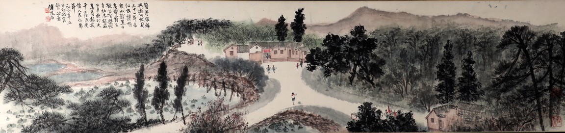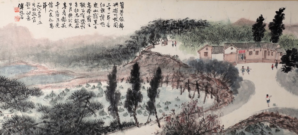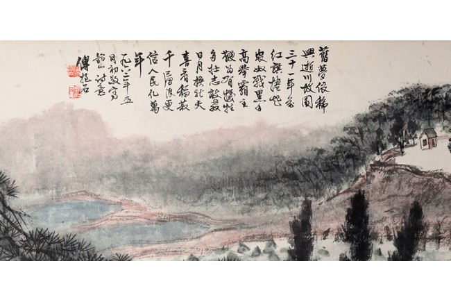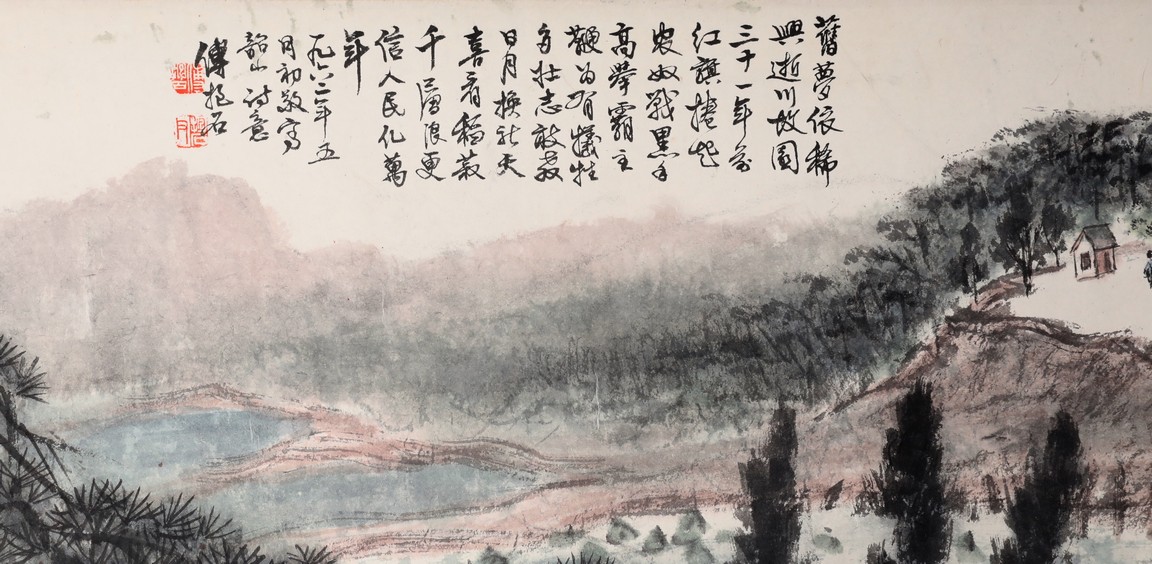 A COLOR AND INK ON PAPER HANDSCROLL 傅抱石款 韶山詩意 設色紙本 手卷