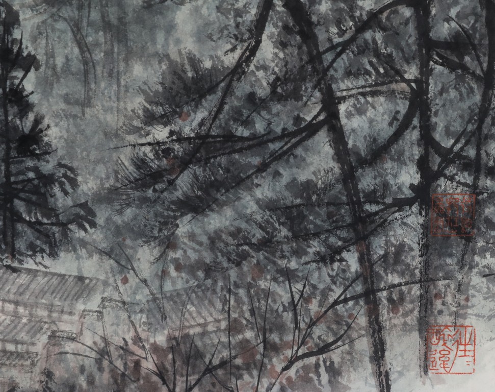 Color and ink on paper. Landscape. Handscroll. Inscribed and signed, attributed to Fu Baoshi.