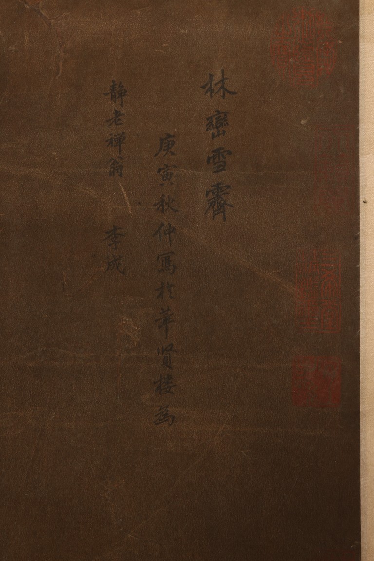 題識:林巒雪霽 庚寅秋仲寫於萃賢樓為靜老禪翁 李成。 來源:北加州灣區藏家提供 Provenance: Property from a Bay area private collection