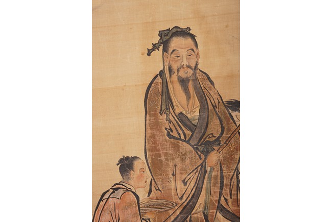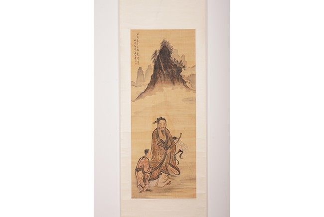 COLOR AND INK ON SILK 'FIGURES' PAINTING, HUANG SHANSHOU 黃山壽 仿藍田筆人物圖 設色絹本 立軸