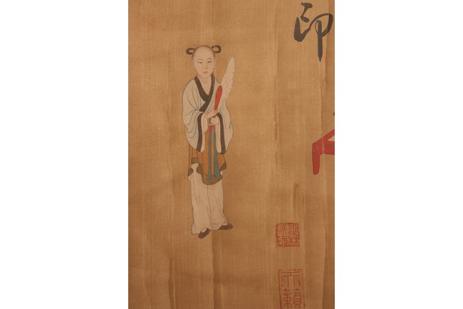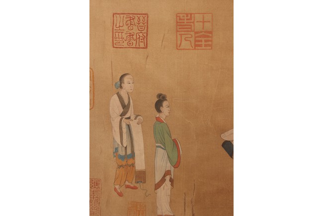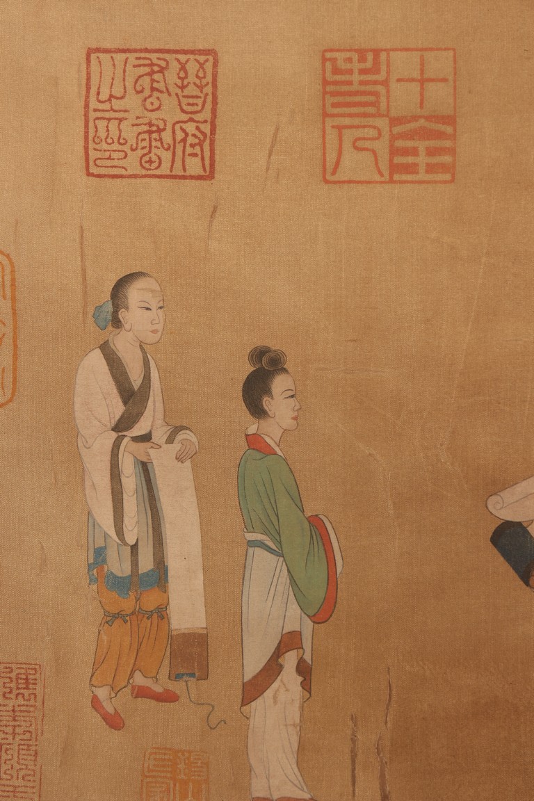 Color and ink on silk. Figures. Handscroll. Attributed to Sun Wei.