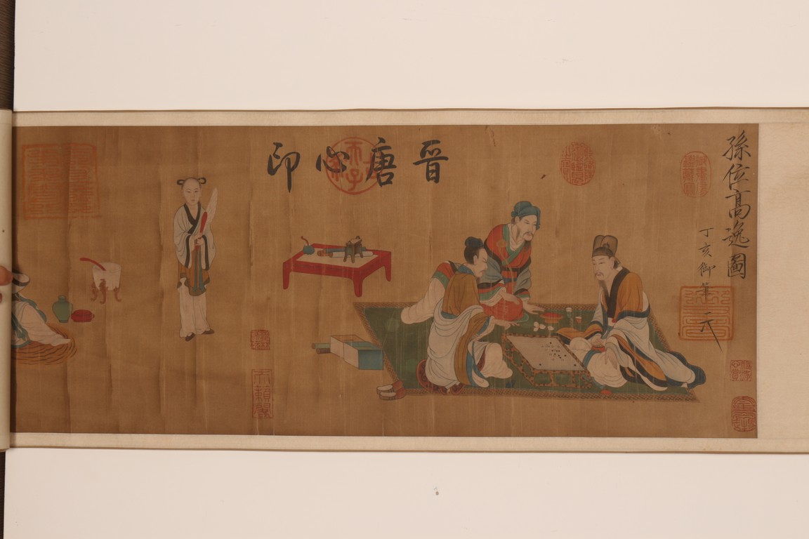 A CHINESE INK AND COLOR ON SILK HANDSCROLL. 孫位(傳) 高逸圖 設色絹本 手卷